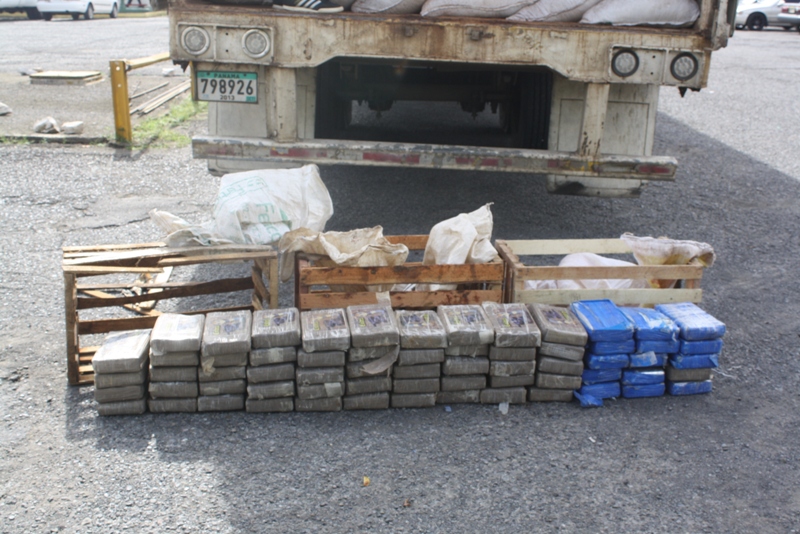 Un total de 64 paquetes de cocaína y la retención de un sujeto, fue el resultado de un operativo realizado por las unidades policiales de servicio en la DIP de la Policía Nacional. El hecho ocurrió ayer en horas de la tarde, cuando fue ubicado un vehículo articulado, color blanco conducido por un ciudadano de 33 años, por el sector de San Isidro, distrito de Bugaba, el cual fue verificado y trasladado a la instalaciones de la Estación Policial de David. Se coordinó con la Fiscalía en Delitos Relacionada con Droga de la provincia de Chiriquí, para que realizarla inspección ocular al furgon del articulado, el cual transporta un producto de abono "gallinaza" y encontraron los 64 paquetes rectangular, que al realizarle la prueba de campo resultando ser positiva. El sospechoso retenido y la droga decomisada fueron remitidas a las autoridades civiles para las investigaciones de rigor.