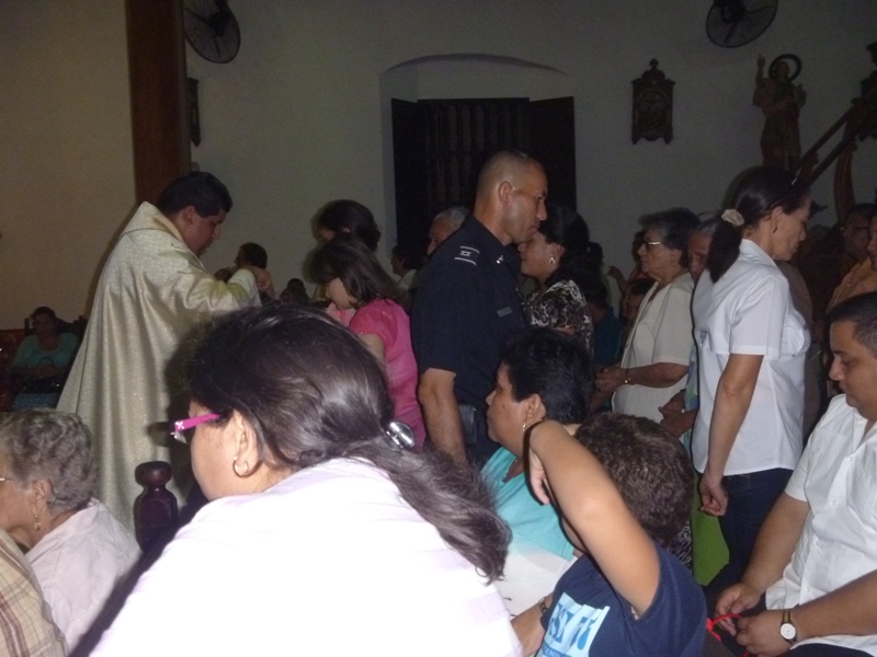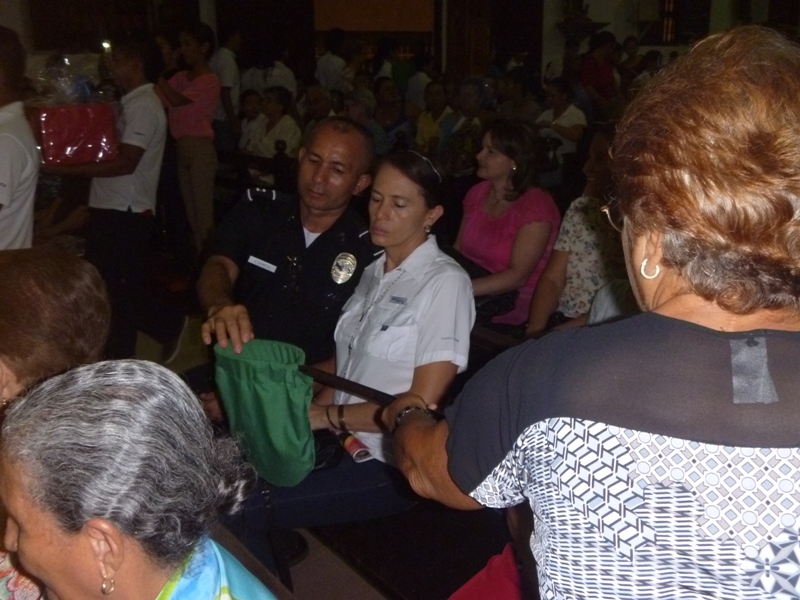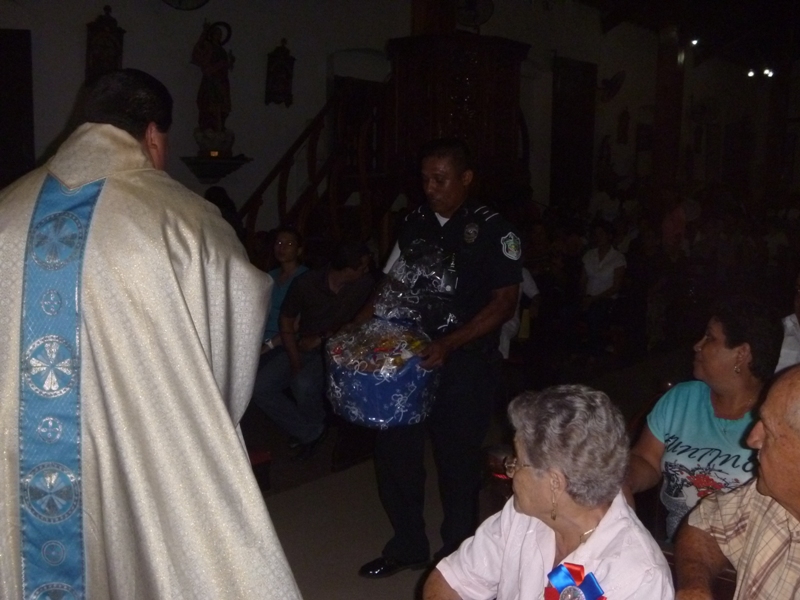 Unidades policiales de la Zona de Policía de Los Santos participaron en la noche de este jueves 17 de julio de la novena a Santa Librada en la Iglesia que lleva su mismo nombre en la ciudad de Las Tablas. En dicha novena asistieron varias unidades de la 7ma., zona y personal de la D.I.J Las unidades entregaron como ofreda canastas de comidas para que sean entregadas a las familias más necesitada de la comunidad tableña. |