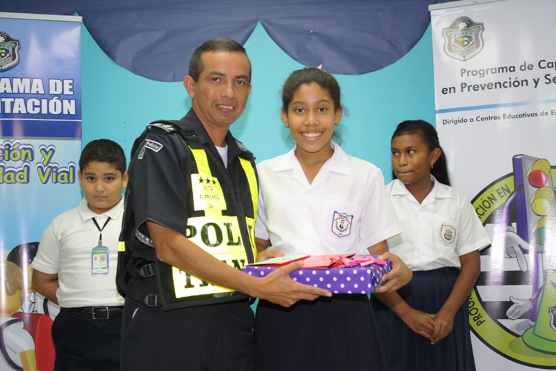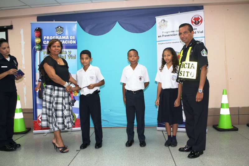 La Dirección Nacional de Operaciones de Tránsito realizó en el Instituto Bolívar, la eliminatoria de la Región de Panamá Centro del Primer Concurso de Oratoria, tema “Prevención y Seguridad Vial” quien estuvo bendicida por el Capellán de la Policia Edgar Flores, además se contó con la participación de los jueces el Comisionado Roger Franco, Subdirector Nacional de esta Dirección, y las educadoras, Daylis Franco, y Yadira de Mejías. Esta eliminatoria tuvo como objetivo el desarrollo de competencias básicas para la vida, poniendo énfasis en la preparación del ciudadano, para que puedan comprender las regulaciones y los riesgos de las diferentes situaciones de tránsito en las que pueden participar en un futuro y ampliar a los niños su capacidad de comunicación, pensamiento, expresión de sus sentimientos, inquietudes, intereses, vivencias y creatividad a través del arte de la oratoria. En la eliminatoria participaron 13 niños resultando con el primer lugar Eliceo Alexander Bonilla Pinto, del Centro Educativo Instituto Nuestra Señora De La Merced, en Segundo lugar Dalismara Sayed, del Centro Educativo Veracruz y el Tercer lugar Arianis Cañizales de la Escuela José María Torrijos, quienes recibieron obsequios y certificados de regalos. Por su participación se les hizo entrega a los 10 niños restantes de un incentivo, por su esfuerzo realizado, llegar hasta la final, los convierte a todos en ganadores. Dentro del concurso se hizo énfasis en el mensaje que eleva la Organización Mundial de la Salud, (OMS) con respecto a los accidentes de tránsito. que para esta organización es una de las principales causas de muerte; es por ello, que desde temprana edad se busca mantener una conducta correcta en las vías públicas, a través de estímulos en educación vial contribuyendo así, a brindarles aprendizajes, el respeto a las leyes y normas vigentes de tránsito y prevenir estos hechos |