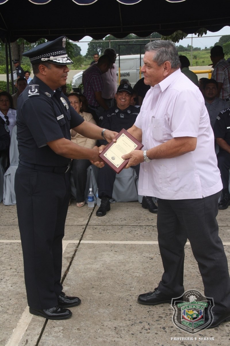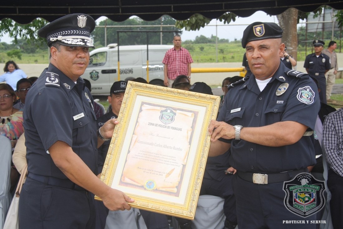 "La Policía va continuar con su trabajo, una Policía distinta, orientada a ser facilitadora, orientada a ser mediadora, a estar mano a mano con la comunidad y autoridades", expresó el director de la Policía Nacional, Omar Pinzón durante la ceremonia de cambio de mando, en la Zona Policial de Veraguas. Durante el acto que se realizó la mañana de este viernes 18 de julio de 2014,el director policial hizo entrega del banderín al comisionado Gilberto Cuevas; quien asume la responsabilidad, como nuevo jefe de la Zona Policial veragüense en reemplazó del comisionado Carlos Rumbo. Pinzón agradeció al comisionado Carlos Rumbo su buen desempeño por la tranquilidad y seguridad de los veragüenses. Al mismo tiempo destacó que ese mismo trabajo se realizará en Colón. El comisionado Rumbo, agradeció a la comunidad, a las autoridades, medios de comunicación y a los uniformados que estuvieron bajo su mando por todo el apoyo que hizo posible su gestión. En tanto, el comisionado Cuevas aseguró que su trabajo se centrará en los principios básicos que desde el 1 de julio ha estado planteando el Director General de la institución de seguridad, en marcados en servir a la comunidad, respetando lo establecido en la Constitución. |