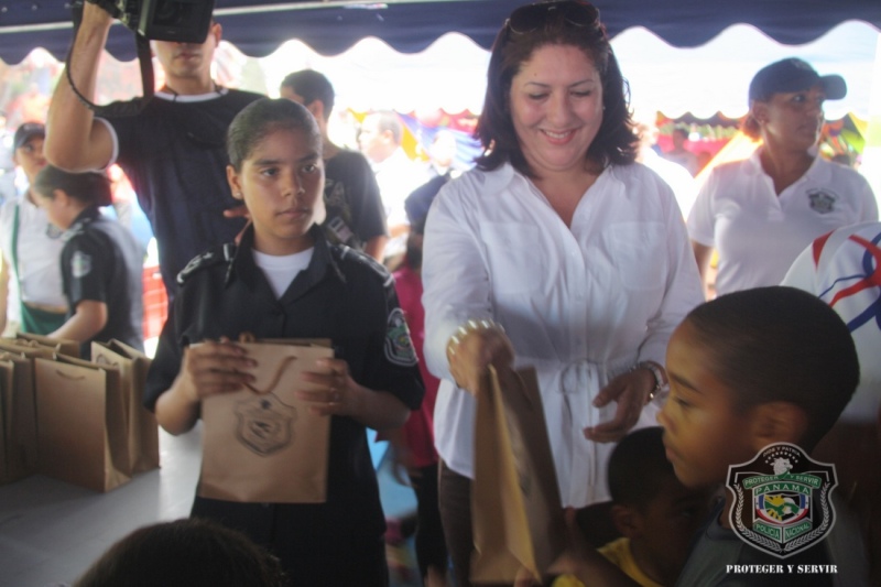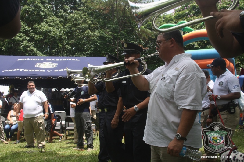 Este domingo 20 se celebra el “Día del Niño y la Niña”, por lo que la Policía Nacional instaló en el Parque Recreativo y Cultural Omar un pabellón con atractivos para la ocasión. El pabellón recibió la visita de la Primera Dama de la República Lorena Castillo, quien departió con Omar Pinzón, Director General de la Policía Nacional, así como con los pequeñines que se deleitaban con los atractivos que se exponían especialmente para ellos. Pinzón, exhortó a los padres a celebrar en familia el Día del Niño y la Niña, destacando la importancia de respetar los derechos de la niñez, como la educación, la salud, identidad y seguridad. La orquesta de la institución policial animó a grandes y chicos, quienes se dieron cita a la actividad familiar organizada por el Despacho de la Primera Dama de la República. La Institución centra su trabajo en la prevención de los delitos, teniendo como norte que en toda la geografía nacional debe reinar la paz y la sana convivencia. La Policía brindó atractivos como; espectáculos de magos, payasos, unidades caninas, unidades especiales de la Policía Nacional, cuenta cuentos, destrezas policiales, pinta caritas, entre otras atracciones educativas. |
