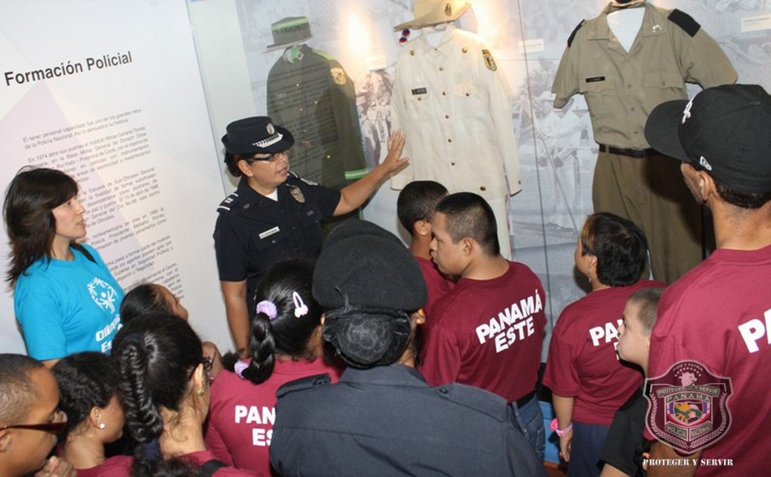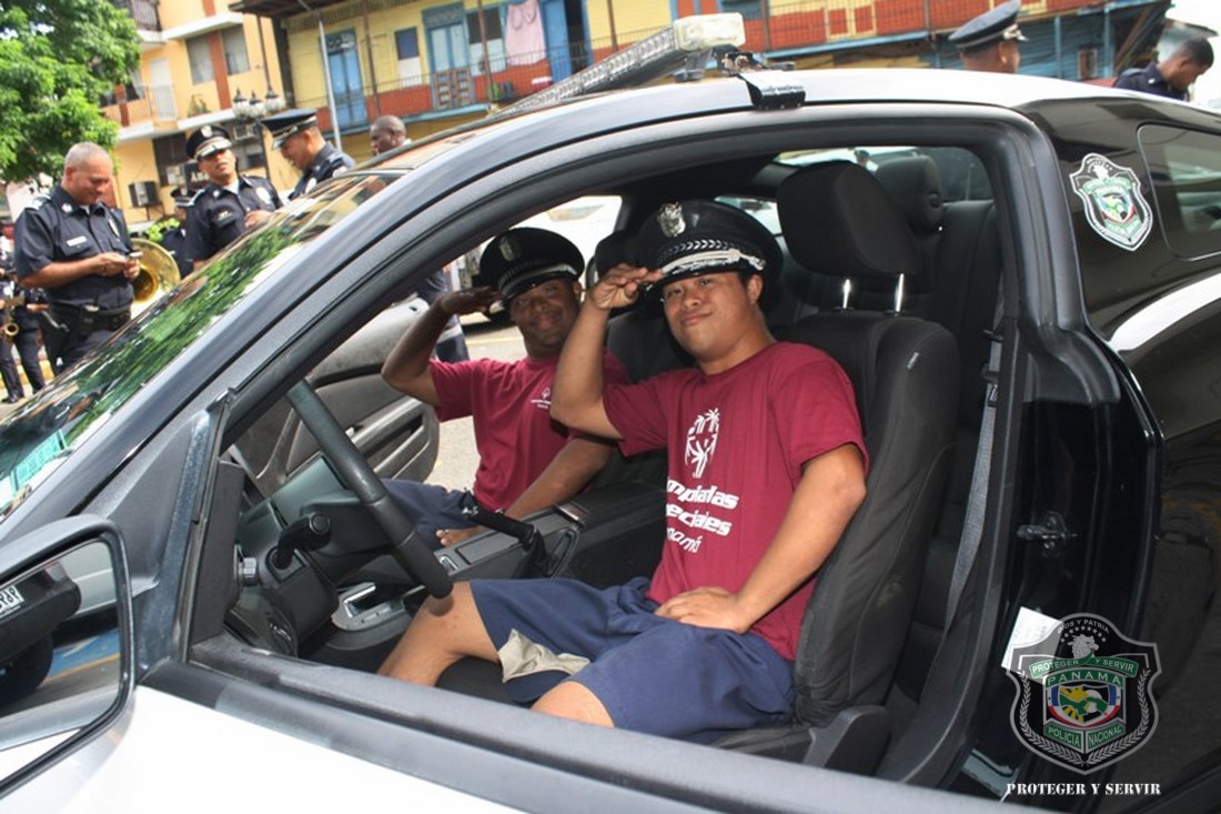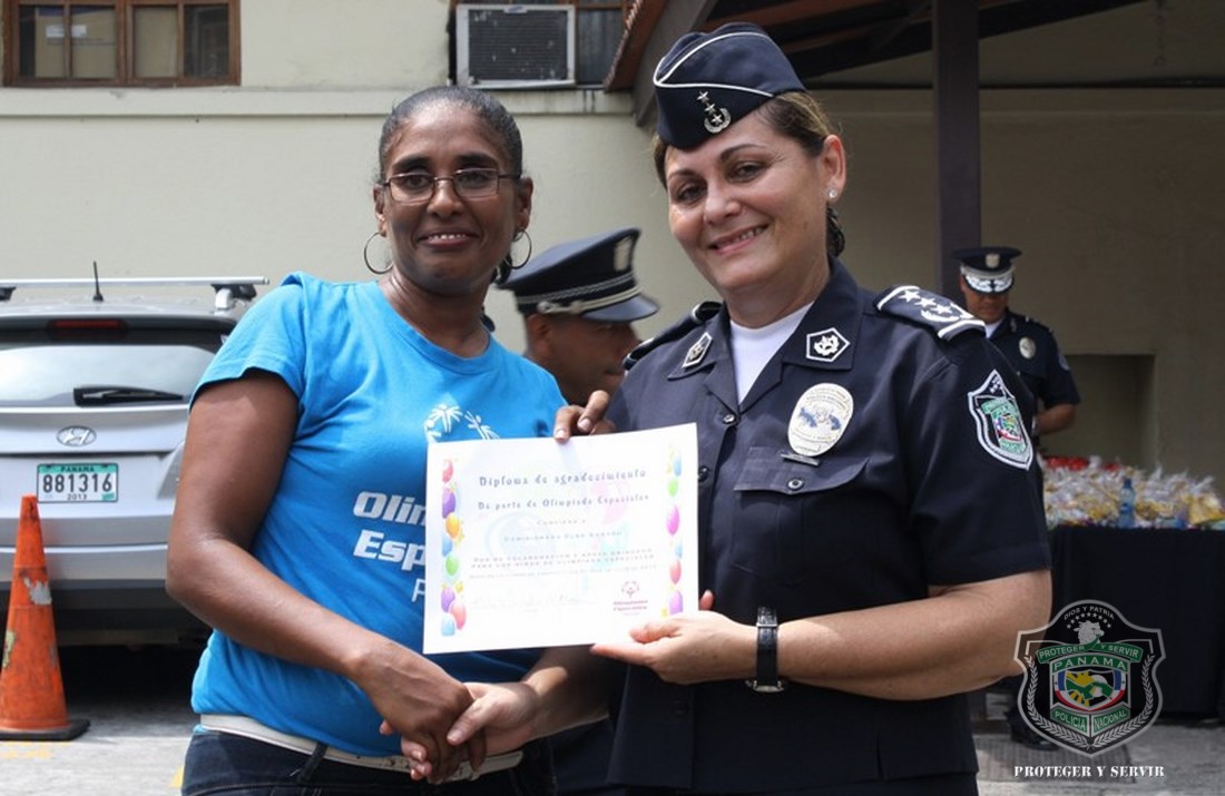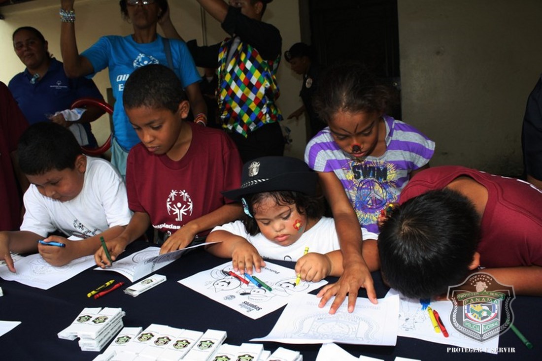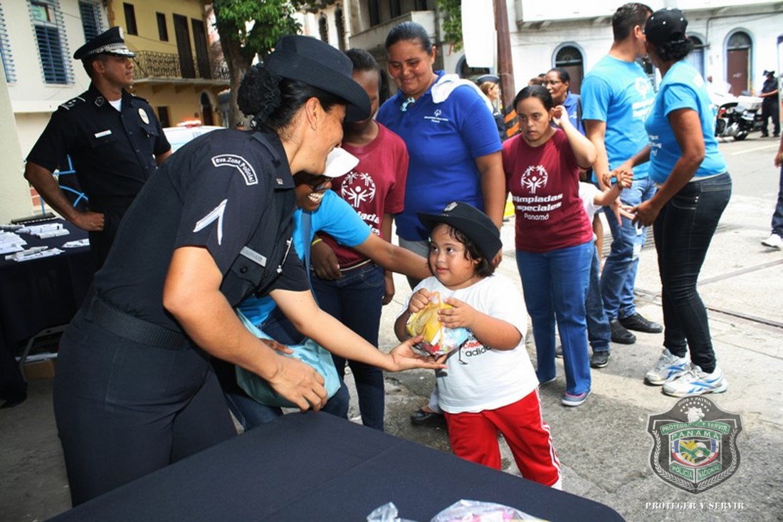 Con una mañana cultural y recreativa, la Policía Nacional, agasajó a más de cien (100) niños y niñas, atletas de las Olimpiadas Especiales del área de Panamá Este, en los predios del Salón de Historia de esta Institución, ubicado en el Corregimiento de San Felipe. El evento fue organizado por el departamento de Seguridad Ciudadana de la subestación Policial de Pueblo Nuevo y la Dirección de Gestión y Proyectos Institucionales, con la finalidad de incentivar a estos niños y niñas en su día. La comisionada, Elsa Garzón, directora de Gestión y Proyectos Institucionales, felicitó a los niños y niñas presentes, en nombre del director y de la Policía Nacional “ La Policía se siente muy contenta de poder traer a nuestra familia policial a los atletas de Olimpiadas Especiales” así lo expresó Garzón, felicitaciones; que reiteró el comisionado, Benjamín Sambrano, jefe de la Zona Metropolitana. Como parte de esta celebración al día del niño, los homenajeados recorrieron el salón de historia de la mano de la teniente Xiomara Edwards, quien los ilustró acerca de la historia policial, seguidamente el mayor, Nelson Muñoz, encargado de la subestación policial de Pueblo Nuevo dio apertura al festejo, en la que el mago de la Policía inició con el entretenido programa, que se desarrolló al ritmo de la Banda de Música de la policía, quienes pusieron a bailar a todos los deportistas y a las unidades policiales. De igual manera la Escuadra show Canina, cautivó a los presentes con sus trucos de agilidad y destreza, no faltó la presencia de Polito, Polita y Conito quienes también se llevaron muchos abrazos por parte de los agasajados. El escenario también fue propicio para que los niños y niñas pudieran compartir con las unidades Linces de la Policía Nacional, en un emocionante paseo a bordo de las motocicletas policiales. La coordinadora de Olimpiadas Especiales de Panamá Este, la señora, Elibeth Ceballos, agradeció a la Policía Nacional por esta gran iniciativa hecha realidad, expresándole todo su respeto a la Institución “Con más de 20 años de servicio para estos niños, la labor de la Policía tiene para mí, el cien por ciento (100%) de mi respeto”, puntualizó Ceballos. La misma entregó reconocimientos a las unidades policiales involucradas en el festejo,como muestra de agradecimiento. Entre pinta caritas, crayones y fotografías la Policía se complació en celebrarle el Día del niño a los atletas de Olimpiadas Especiales de Panamá Este, siendo estos pequeños de gran importancia y orgullo para todos!