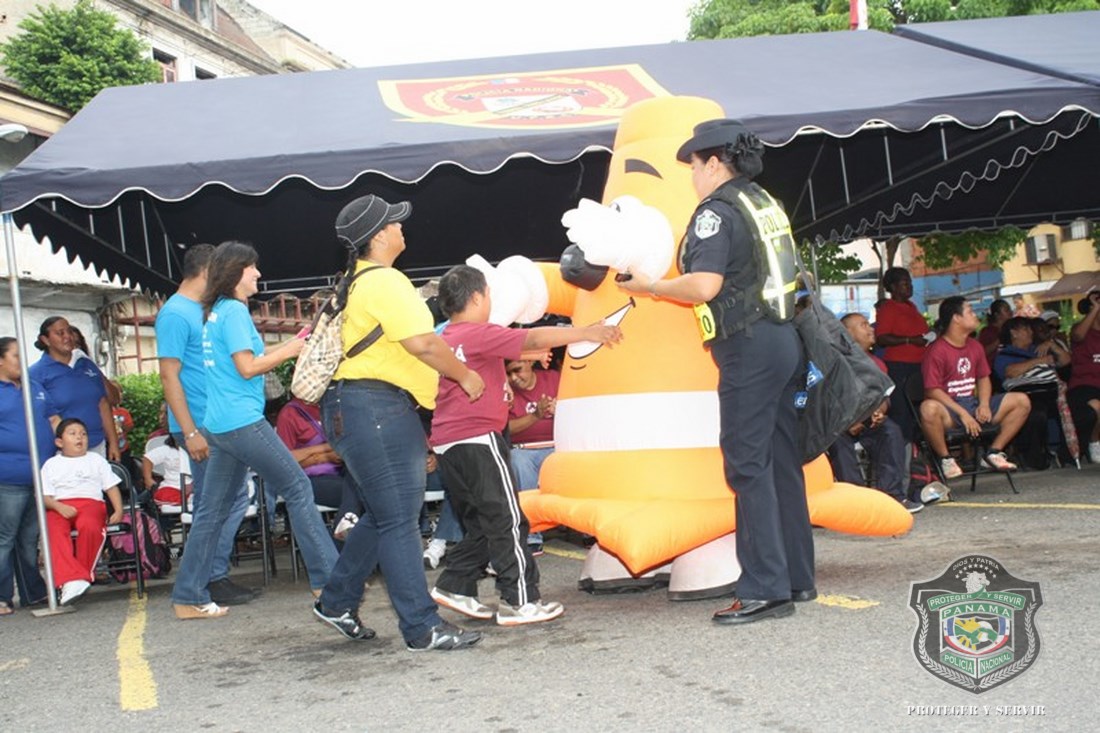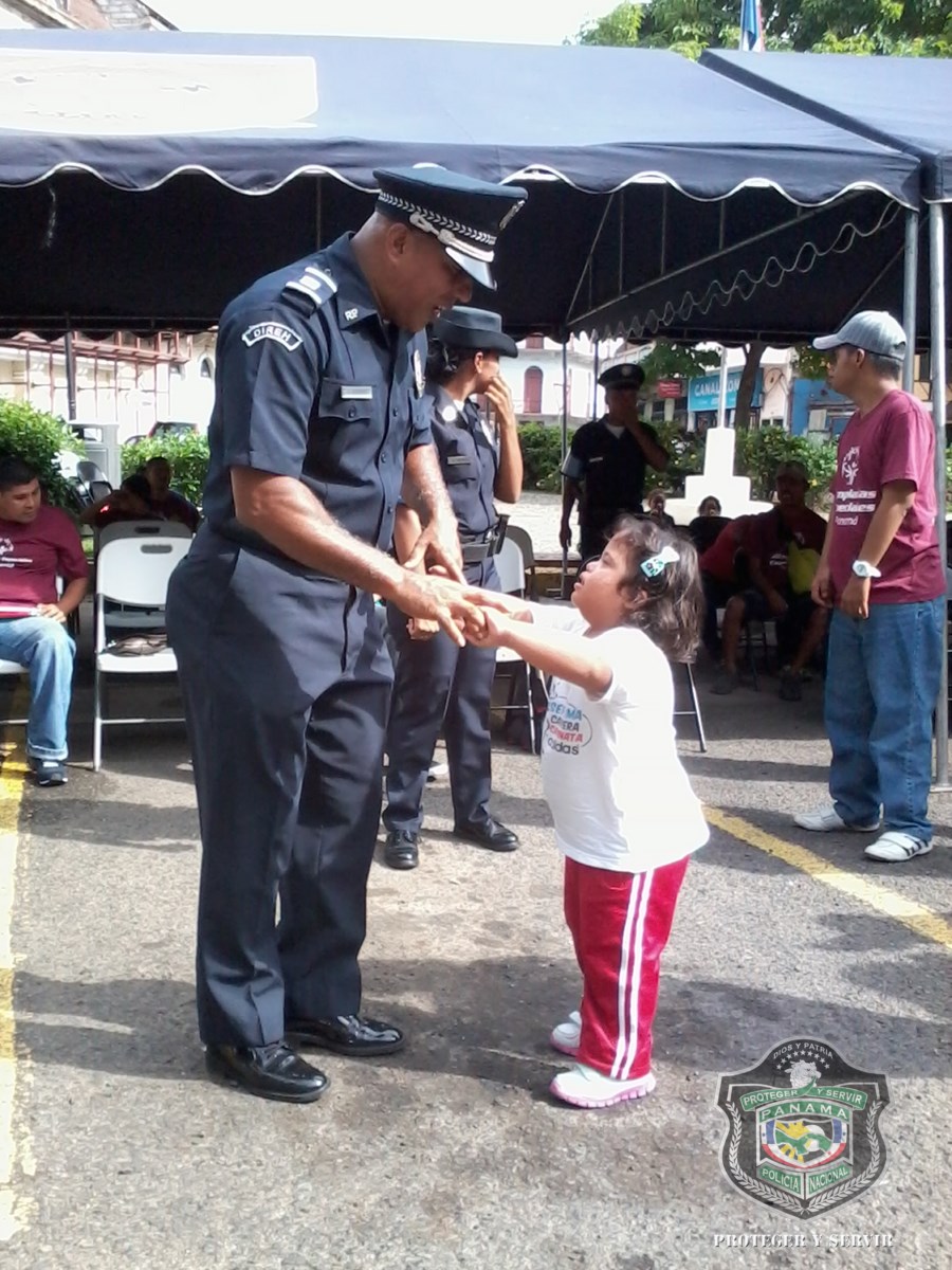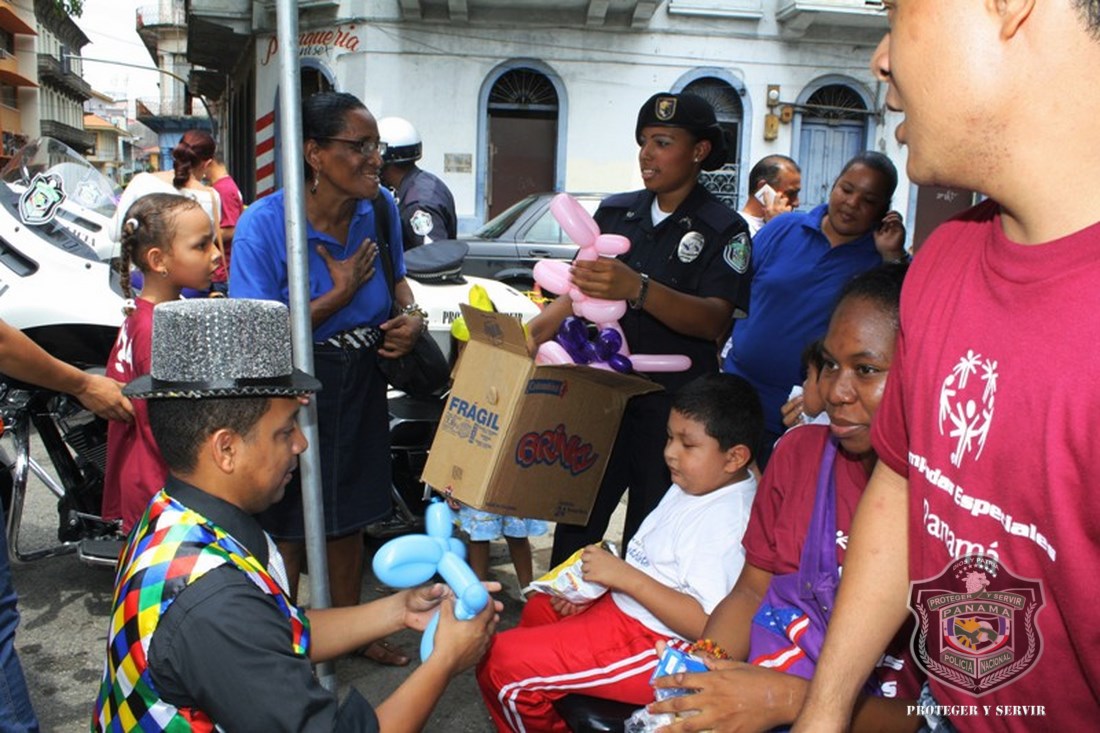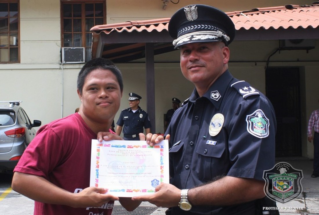 Con una mañana cultural y recreativa, la Policía Nacional, agasajó a más de cien (100) niños y niñas, atletas de las Olimpiadas Especiales del área de Panamá Este, en los predios del Salón de Historia de esta Institución, ubicado en el Corregimiento de San Felipe. El evento fue organizado por el departamento de Seguridad Ciudadana de la subestación Policial de Pueblo Nuevo y la Dirección de Gestión y Proyectos Institucionales, con la finalidad de incentivar a estos niños y niñas en su día. La comisionada, Elsa Garzón, directora de Gestión y Proyectos Institucionales, felicitó a los niños y niñas presentes, en nombre del director y de la Policía Nacional “ La Policía se siente muy contenta de poder traer a nuestra familia policial a los atletas de Olimpiadas Especiales” así lo expresó Garzón, felicitaciones; que reiteró el comisionado, Benjamín Sambrano, jefe de la Zona Metropolitana. Como parte de esta celebración al día del niño, los homenajeados recorrieron el salón de historia de la mano de la teniente Xiomara Edwards, quien los ilustró acerca de la historia policial, seguidamente el mayor, Nelson Muñoz, encargado de la subestación policial de Pueblo Nuevo dio apertura al festejo, en la que el mago de la Policía inició con el entretenido programa, que se desarrolló al ritmo de la Banda de Música de la policía, quienes pusieron a bailar a todos los deportistas y a las unidades policiales. De igual manera la Escuadra show Canina, cautivó a los presentes con sus trucos de agilidad y destreza, no faltó la presencia de Polito, Polita y Conito quienes también se llevaron muchos abrazos por parte de los agasajados. El escenario también fue propicio para que los niños y niñas pudieran compartir con las unidades Linces de la Policía Nacional, en un emocionante paseo a bordo de las motocicletas policiales. La coordinadora de Olimpiadas Especiales de Panamá Este, la señora, Elibeth Ceballos, agradeció a la Policía Nacional por esta gran iniciativa hecha realidad, expresándole todo su respeto a la Institución “Con más de 20 años de servicio para estos niños, la labor de la Policía tiene para mí, el cien por ciento (100%) de mi respeto”, puntualizó Ceballos. La misma entregó reconocimientos a las unidades policiales involucradas en el festejo,como muestra de agradecimiento. Entre pinta caritas, crayones y fotografías la Policía se complació en celebrarle el Día del niño a los atletas de Olimpiadas Especiales de Panamá Este, siendo estos pequeños de gran importancia y orgullo para todos!