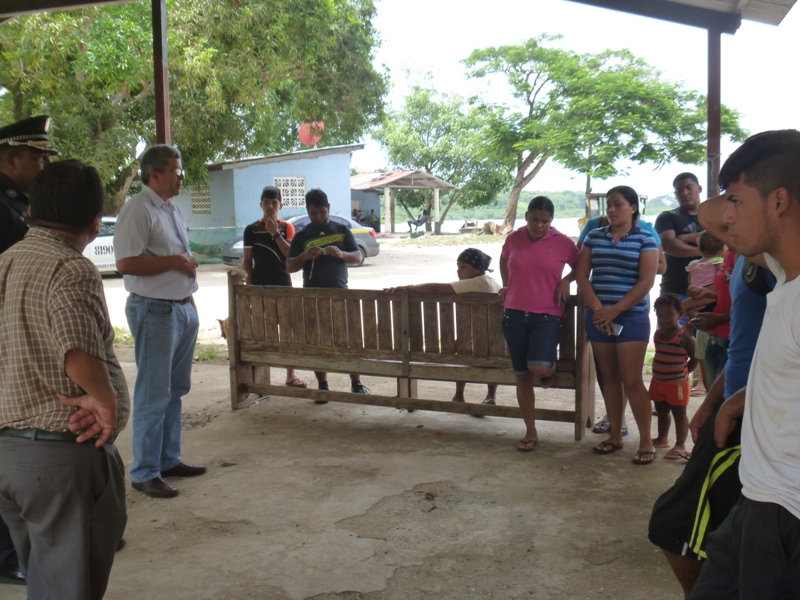 El Subcomisionado Luis Navarro, Jefe de la Treceava Zona Policial de Arraiján realizó en la mañana de este lunes 21 de julio un acercamiento a la comunidad de Playita de Bique, corregimiento de de Cerro Silvestre, donde se reunió con jóvenes del área. El Subcomisionado Navarro, aprovechó la ocasión para explicarles a los moradores la importancia de la prevención de delitos entre niños, jóvenes y adultos, por lo que, los instó en formar parte de los programas de Seguridad Ciudadana y Desarrollo Humano. Por su parte, el doctor José Iván Guerrero, del Ministerio de Seguridad Pública, les indicó los objetivos del programa de resocialización de jóvenes que forman parte de grupos pandilleros y en riesgo social. Los jóvenes se mostraron interesados en formar parte de estos programas, por lo que se comprometieron en ser agentes multiplicadores y coordinar una nueva reunión con las autoridades. |