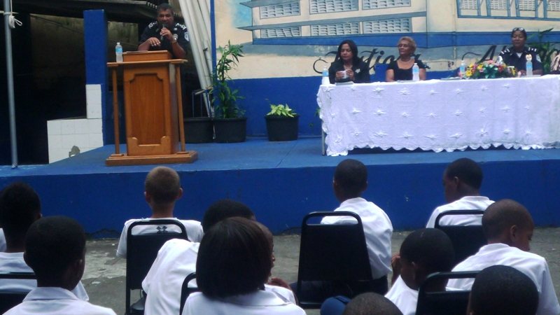 Este jueves la Policía Nacional inauguró el programa Great (Educación para Resistencia a las Pandillas), en las instalaciones de la escuela Pablo Arosemena, ubicada en la calle 2 avenida Bolívar. El comisionado Carlos Rumbo, jefe de la zona habló de la importancia que tiene este programa. "Su finalidad es educar a los estudiantes que cursan los V grados, para que sepan decirle No, a las personas que quieran introducirlos al mundo de las drogas o a incursionar en las pandillas", destacó. Ya hay varias escuelas que forman parte de este programa. Hay que destacar que en el 2012, la escuela Pablo Arosemena fue el primer centro educativo en sumarse a esta iniciativa. Hasta la fecha, más de 2 mil estudiantes han sido capacitados por unidades de la Policía de La Niñez y la Adolescencia. En esta actividad participaron Miriam de Carillo, directora de la escuela; la licenciada Saturnina Bereford, en representación de la gobernación y la licenciada Dionisia Atkinson, en representación del Ministerio de Desarrollo Social.
