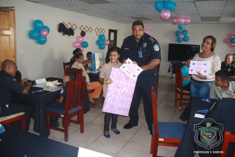 En conmemoración al Día del Niño, la Zona Metropolitana Área Oeste, homenajeó a dieciocho (18) niñas y niños de distintas escuelas, quienes representaron las diferentes jefaturas que compone esta Zona Policial. El agasajo inició con un desayuno en las instalaciones de la Zona Metro Oeste, donde las unidades policiales le hicieron entrega de obsequios y certificados además de reconocimientos a los niños y niñas presentes, resaltando su buena conducta y calificaciones. Posteriormente los homenajeados fueron trasladados al McDonal de calle 50, donde continuó la celebración, los mismos fueron acompañados por la mayor Dalys Melo, quien expresó sentirse muy complacida de compartir la mañana con estos niños y niñas que merecidamente los representaron en una fecha muy especial, como lo es el día de la niñez. |