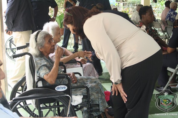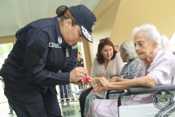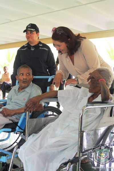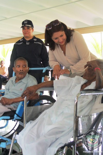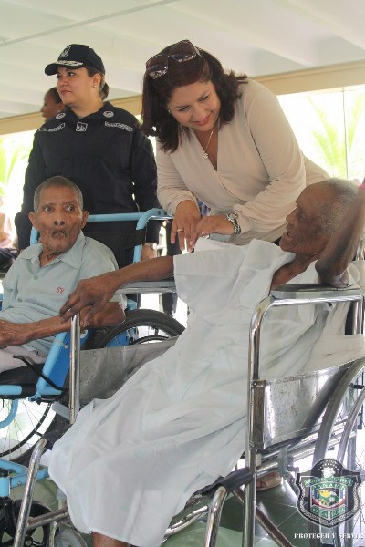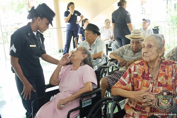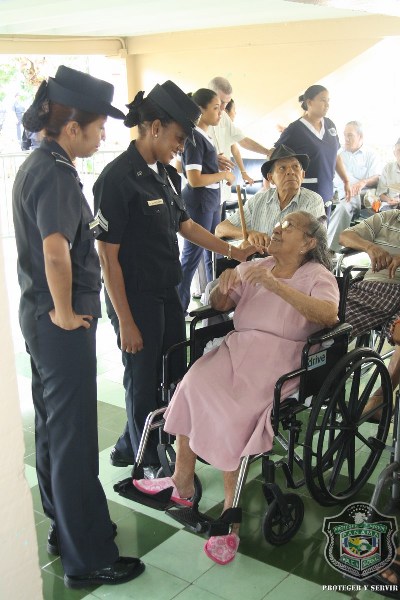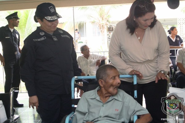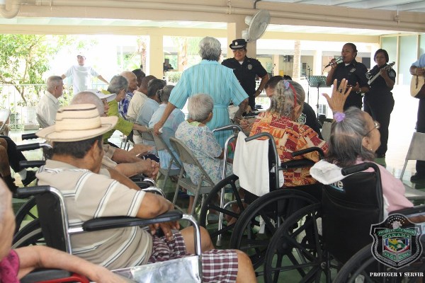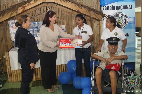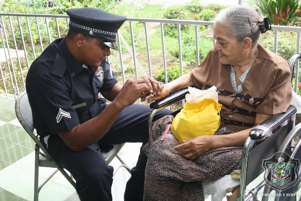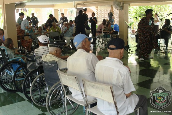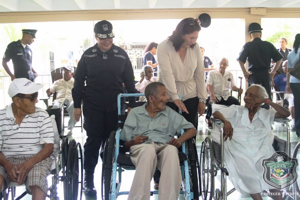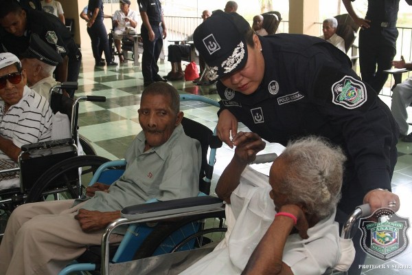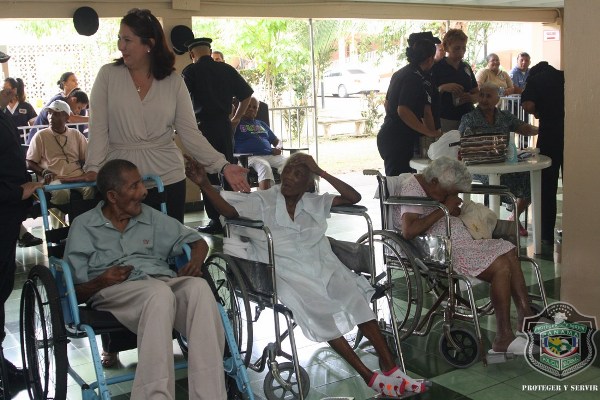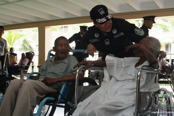 En el marco de celebración del Día del Adulto Mayor, unidades de la Policía Nacional visitaron el hogar de ancianos Bolívar, ubicado en Juan Díaz, donde compartieron una mañana agradable con los abuelos y abuelas que se encuentran internados en este lugar. El momento fue propicio para la entrega de donaciones de insumos para uso personal, por parte de esposa del director general de la Policía Nacional, Nacelis de Pinzón, y la directora nacional de Bienestar Laboral y Policial, subcomisionada, Elida Ortega, quienes a su vez brindaron mensajes de aliento a los abuelos, que las escuchaban atentamente. “Un momento de esparcimiento, amor y cariño le hemos traído a todos los abuelos para que se sientan parte de nuestra sociedad y sientan que los policías somos sus amigos, por eso hoy estamos aquí compartiendo con ustedes” puntualizó, Ortega. En esta actividad también se les hizo cortes de cabellos, blowers, manicure, y hasta tintes para las hermosas abuelas que nos llenaron de nostalgia con las anécdotas e historias, que compartieron con los presente. Los integrantes del conjunto de voces y cuerdas de la institución policial, amenizaron la velada y pusieron a bailar a los adultos que no pudieron ocultar su emoción, saliendo a bailar con las unidades policiales. |