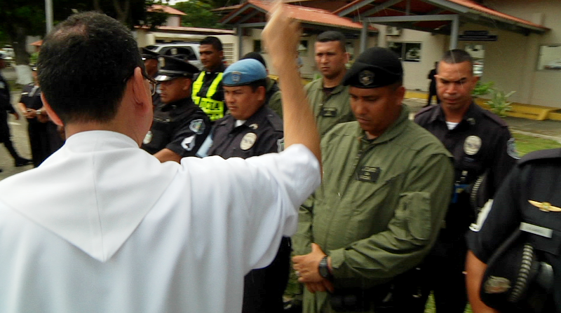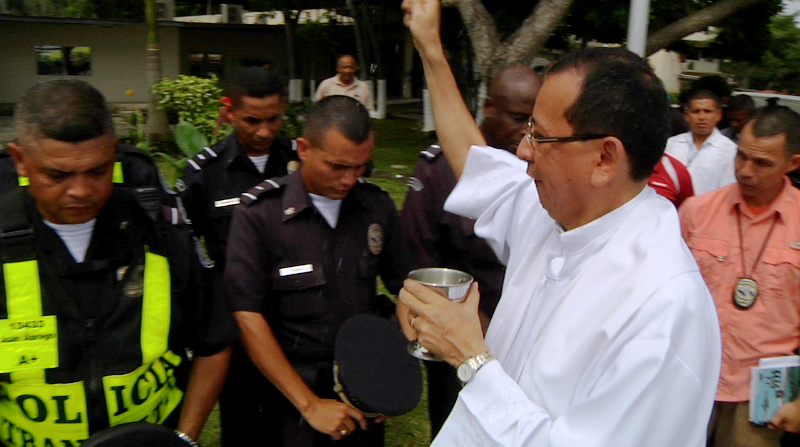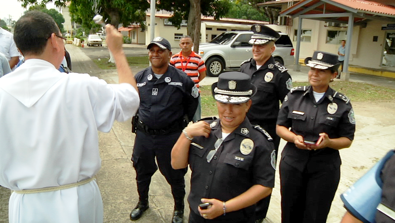 El padre, Edgar Flores; capellán de la Policía Nacional bendijo a los conductores de la institución de seguridad, en una ceremonia en honor a San Cristóbal. En la celebración del día del Santo protector de los conductores, el director general de la Policía, Omar Pinzón expresó que los conductores de la institución son un apoyo importante en el desarrollo de la labor que realiza la institución por el bienestar de la comunidad, debido a que de ellos depende el traslado de los policías que día a día arriesgan la vida en su misión de Proteger y Servir. Durante la ceremonia que se realizó en la sede de Ancón, estuvieron presentes el comisionado Porfirio Justavino, jefe de la Dirección Nacional de Transporte y Mantenimiento, oficiales y los conductores de las diferentes dependencias de la institución, quienes elevaron una plegaria por la protección de todos los policías. La actividad también tiene como propósito reforzar la fe cristiana en las unidades, y conservar con respeto las tradiciones y celebraciones de la Iglesia.