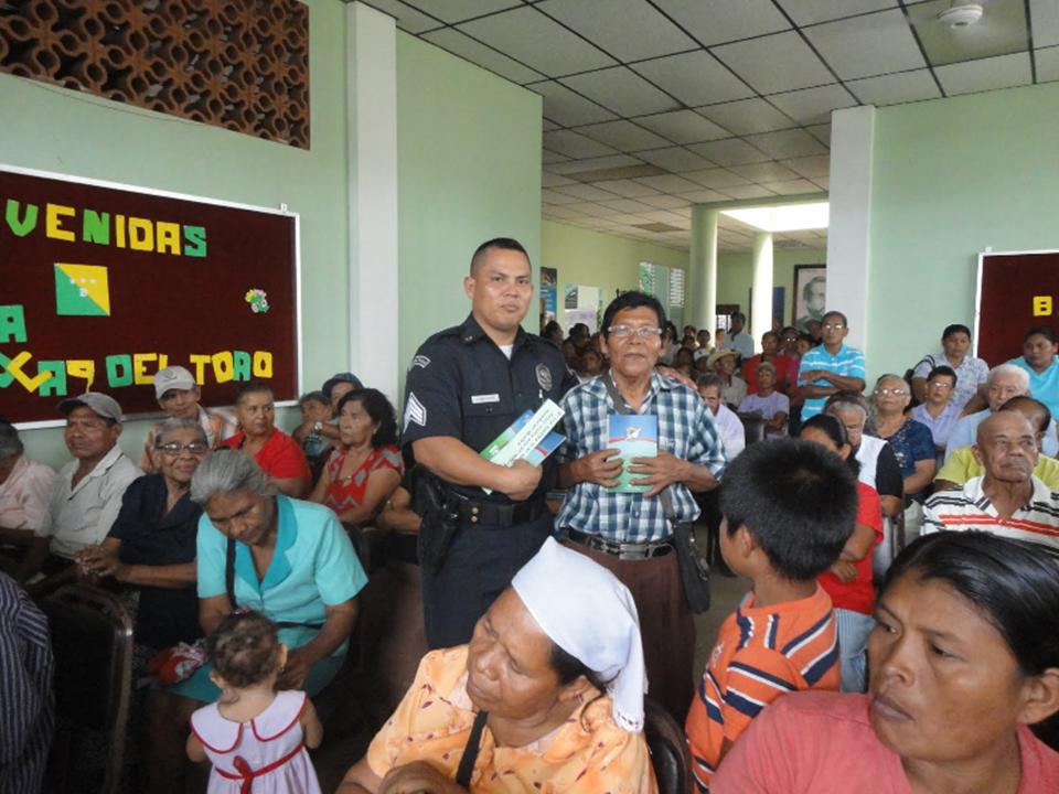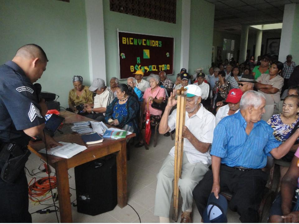 Al menos 340 personas asistieron al conversatorio de las unidades del Servicio de Policía Cristiana de la 1º Zona Policial de Bocas del Toro. Todo esto se dio en el marco de las capacitaciones que realiza el Ministerio de Desarrollo Social (Mides), a los adultos mayores que se encuentran dentro del programa 100 a los 70. Entre los temas tratados fueron: prevención de accidentes en el hogar para personas mayores impartida por la Policía Nacional y la honra de los ancianos. La actividad se llevó a cabo en la casa cural de la Iglesia Santa Isabel de Changuinola, donde se repartieron biblias entre los presentes. La Policía Cristiana de Bocas del Toro, seguirá dando estas capacitaciones en coordinación con el Mides en otros sectores como Almirante, Bocas Isla, Chiriquí Grande y en parte de la comarca Ngöbe-Buglé. |