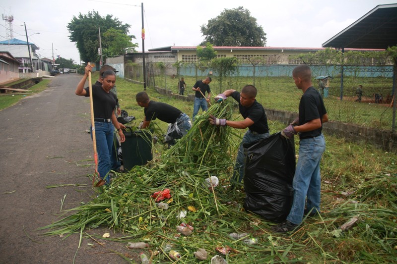 Una jornada de limpieza en la escuela Francisco Miranda, ubicada en el sector de Felipillo del corregimiento 24 de Diciembre, fue llevada a cabo por aspirantes del Instituto Superior Policial. El Comisionado Benjamín Zambrano, Jefe de la Zona de Policía Metropolitana, explicó que esta jornada de limpieza se mantendrá de manera coordinada con los moradores de Felipillo, Esperanza Arriba y Abajo así como con lo residentes de Cabra y la 24 de Diciembre. Los reclutas colaboraron de manera coordinada para la reparación y limpieza de bancas, tableros y salones así como la recolección de desechos y la limpieza de los canales por donde corren las aguas de lluvia, con miras a combatir incluso los posibles criaderos de mosquitos. Igualmente se procedió a cortar los herbazales del citado plantel y sectores aledaños a la escuela con miras a lograr un medio ambiente saludable que motive al estudio y la superación intelectual de los niños y jóvenes que acuden a recibir clases diariamente en este centro educativo que posee tres jornadas educativas, incluyendo una nocturna laboral. “Todo esto lo hacemos con el fin de mantener las áreas limpias contribuyendo así a la eliminación de los mosquitos y otros focos de enfermedades”, aseguró el Comisionado Benjamín Zambrano, jefe de la Zona de Policía Metropolitana. |