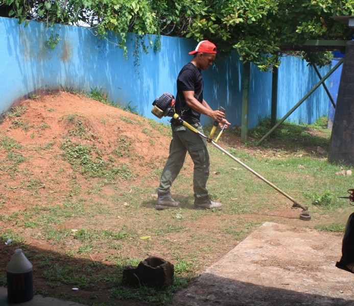 Equipados con machetes y maquinas de cortar, unidades de la Zona Policial de Arraiján iniciaron desde temprano una jornada de limpieza en el Centro Educativo Nuevo Arraiján (C.E.N.A.), ofreciendo así, un mejor ambiente a más de dos mil estudiantes. La labor de limpieza que se llevo a cabo este martes 29 de julio, consistió en cortar el césped, podar árboles y lavar los salones de clases de uno de los pabellones. El nuevo jefe de ésta zona policial, subcomisionado Luis Navarro conversó con el personal docente y administrativo del plantel para establecer estrategias de seguridad. A su vez se comprometió a continuar apoyándolos. Los educadores agradecieron a la Policía Nacional la colaboración brindada, contribuyendo al buen desarrollo en el proceso de enseñanza de los alumnos.