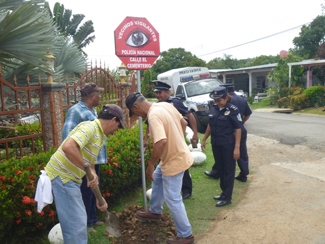 Personal de la Oficina de Seguridad Ciudadana de la Sexta Zona de Policía de Herrera y miembros policivos del área policial del distrito de Parita, se trasladaron hasta la comunidad de Paris de Parita, con el fin de colocar junto a moradores, 14 Logos del Programa de Vecinos Vigilantes. Esta Acción se realiza con el fin de crear una cultura de Seguridad Ciudadana, coadyuvando a la convivencia pacífica en esta comunidad y logrando la integración de Los Vecinos, con el objetivo de contrarrestar y prevenir los problemas de inseguridad que afectan el orden ciudadano. |