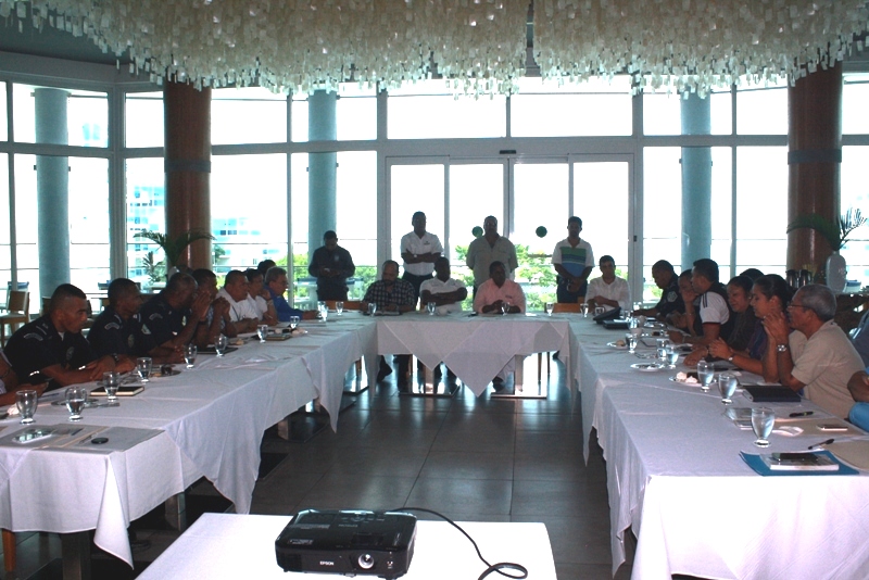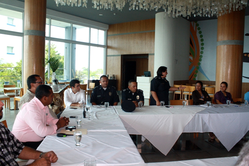 Como una política de acercamiento institucional, unidades de la Policía Nacional, encabezada por la Jefa de la Zona Policial de Coclé, la comisionada Ibeth González, se reunieron este martes en horas de la mañana, con gerentes de los diferentes hoteles de playa de esta provincia del distrito de Antón y jefes de Seguridad, dando seguimiento al programa de los Hoteles Vigilantes y abordar temas fundamentales en medidas de Seguridad. La comisionada González, junto al subcomisionado Federico Oberto jefe de área "C" Antón, la fiscal Superior Gladys Morán del Segundo Distrito Judicial de Coclé y Veraguas, la personera de Antón, la licenciada Yenisbeth Vílchez, quienes explicaron a los presentes la metodología que debe realizarse al presentarse una situación en un momento dado y no se cuente con el conocimiento necesario. En ese sentido, los presentes coordinaron con las autoridades problemas inquietudes que se están dando y fueron orientados sobre el Sistema Penal Acusatorio, indocumentados, capacitaciones en cuanto a la ley de turismo, ordenamiento con los animales en soltura (caballos y ganado) fueron algunos de los temas abordados. La cdomisionada Ibeth González, fue enfática al manifestar que la Policía Nacional dará respuesta a las inquietudes manifestadas en dicha reunión y que puede contar con el apoyo de esta institución de seguridad. |