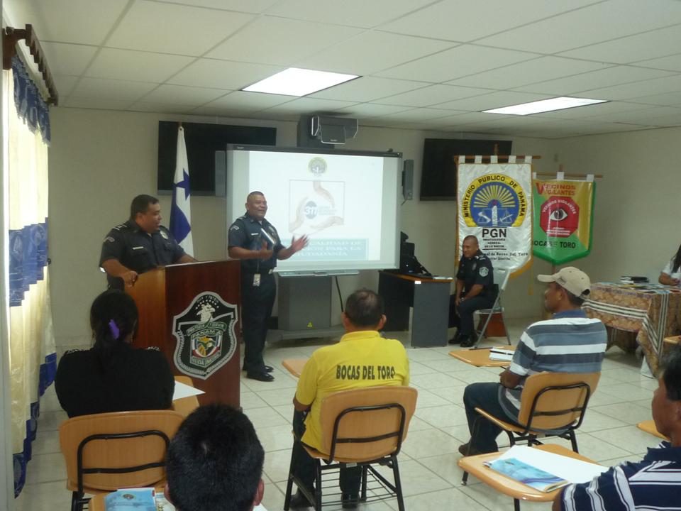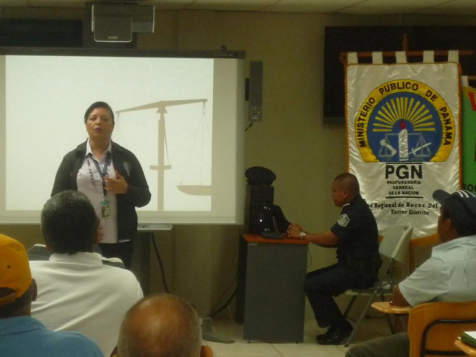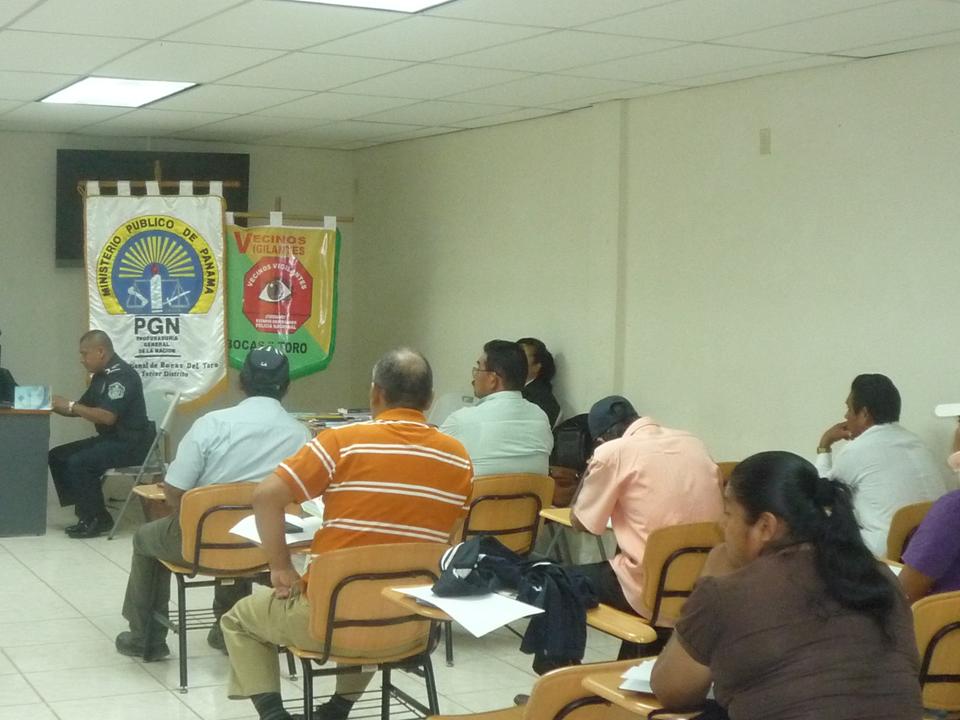 La oficina de Seguridad Ciudadana de la Zona Policial de Bocas del Toro en coordinación con la Fiscalía Superior del Tercer Circuito Judicial, del Ministerio Público, realizaron una capacitación sobre el Sistema Penal Acusatorio para todos los coordinadores y miembros directivos de los programas de Vecinos Vigilantes. Fueron más de tres horas de instrucción, donde los participantes tuvieron la oportunidad de hacer preguntas relacionadas al tema y aclarar sus dudas. Al finalizar la Licenciada Vielka Broce, Fiscal Superior manifestó estar a disposición de todos los ciudadanos participantes de los programas de Seguridad Ciudadana que lleva a cabo la Policía Nacional, por el bienestar de los residentes de Bocas del Toro. |