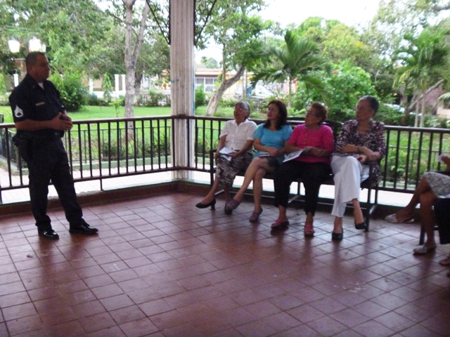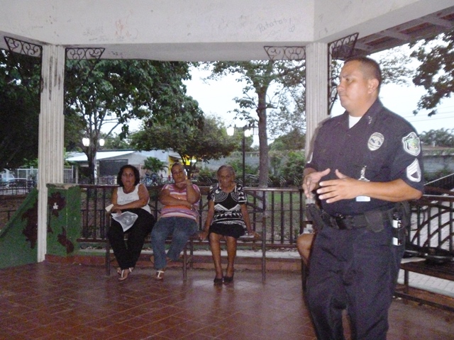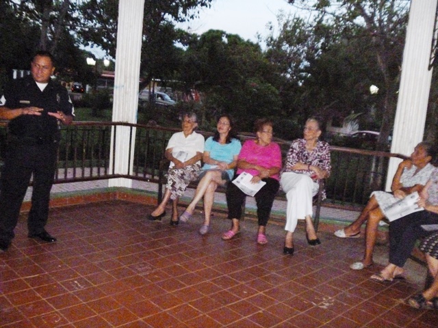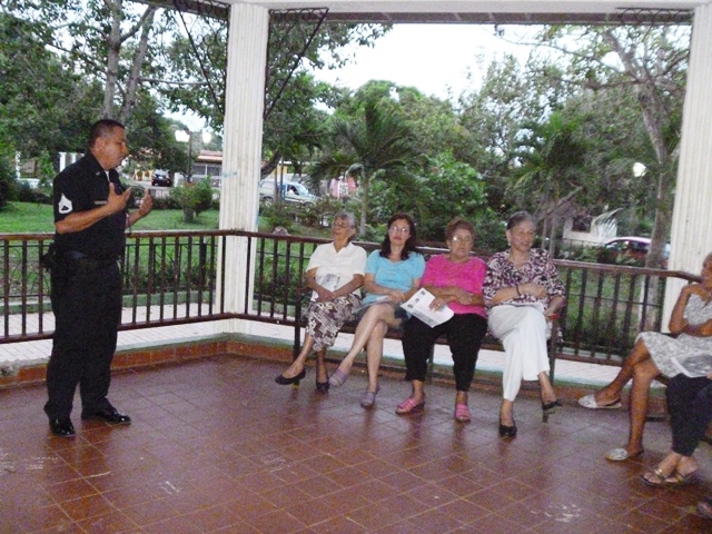 Unidades de la Oficina de Seguridad Ciudadana de la Sexta Zona de Policía de Herrera, se reunieron con moradores del corregimiento de San Juan Bautista, en Chitré, para unirse al programa de Vecinos Vigilantes. Ellos buscan caminar (Policía y comunidad) para enfrentar los hechos delictivos en sus diferentes manifestaciones. La finalidad de esto es impulsar una cultura de Seguridad Ciudadana, para que se pueda dar una convivencia pacífica e integradora. El punto de conversación fue el parque Juan A. Rodríguez