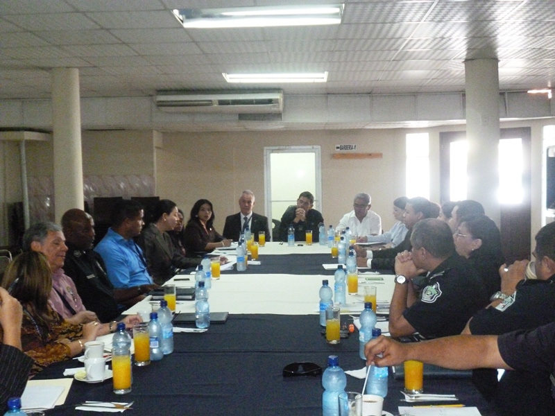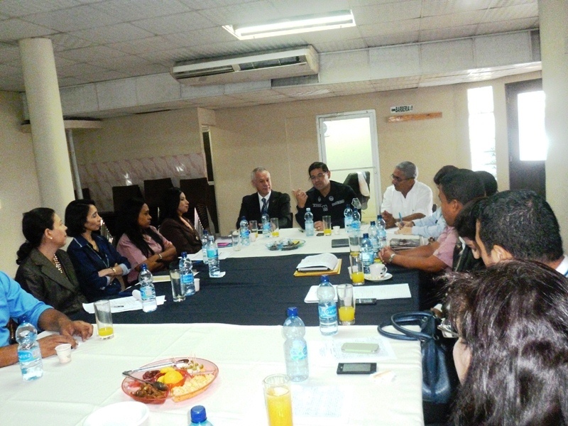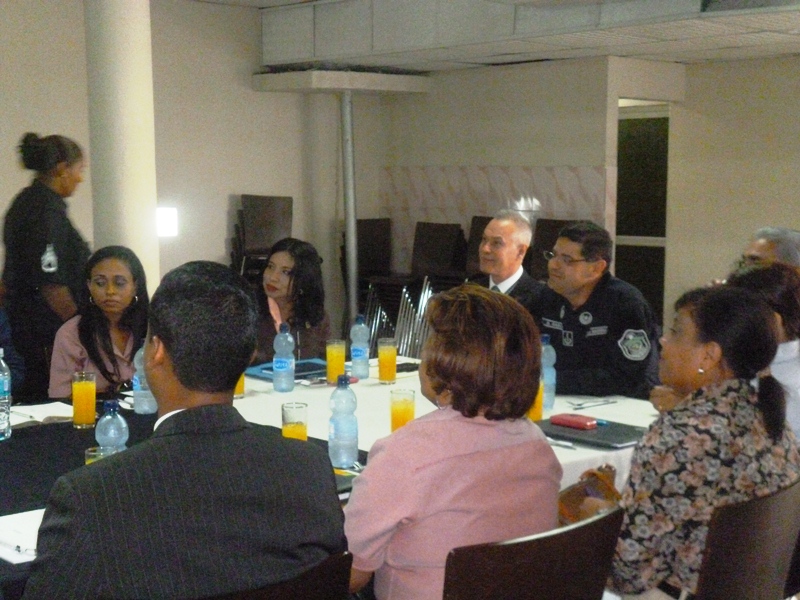 El comisionado Nadim García, Jefe de la Décima Zona de Policía, se reunió con miembros del Ministerio Público del sector oeste del país. Continuando con su política de trabajo y de mantener una estrecha relación con las autoridades, el comisionado García conversó por más de una hora con ellos y en compañía del gobernador de la provincia de Panamá Oeste, Temístocles Javier Herrera. El comisionado García dialogó con cada uno de los miembros del Ministerio Público para escuchar sus inquietudes en relación al servicio policial a fin de agilizar los trámites legales. Por su parte, Adolfo Pineda, fiscal Séptimo Superior, agradeció la atención que el comisionado García ha tenido para con ellos y manifestó que los lazos de comunicación con las unidades de la Policía en esta área siempre ha sido excelente y que en todo momento han recibido el apoyo. |