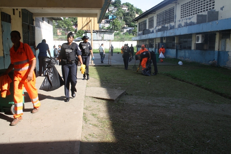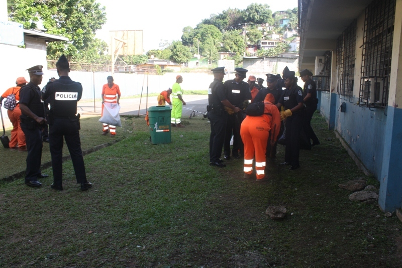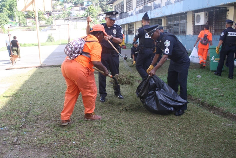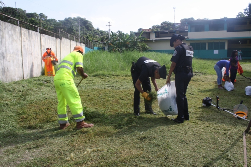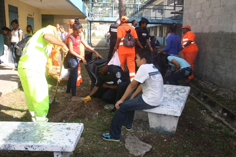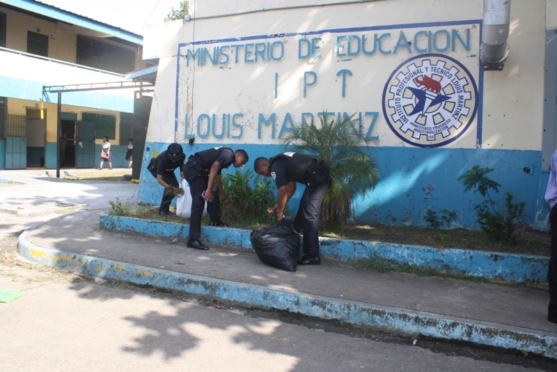 Unidades de la Unidad preventiva Comunitaria (UPC) de la Policía Nacional en Samaria junto a la Alcaldía del distrito de San Miguelito, realizaron este viernes 1 de agosto una jornada de limpieza en el Instituto Profesional Técnico Louis Martinz. Esta limpieza denominada "Yo si Limpio", incluyo las instalaciones del plantel y sus alrededores, y tiene como propósito ofrecer a sus estudiantes un ambiente saludable de estudio. Los alumnos compartieron con los uniformados, quienes les hablaron la importancia de cooperar con el aseo de su colegio y de su entorno, como parte de los valores que los hace ser buenos ciudadanos. Incluso algunos jóvenes se sumaron a la limpieza. El subcomisionado Reymundo Barroso, jefe de la UPC en Samaria expresó que la Policía Nacional colabora y organiza actividades por el bienestar de la comunidad, asegurando que continuaran realizándose como parte de la labor social y preventiva de la Policía. |