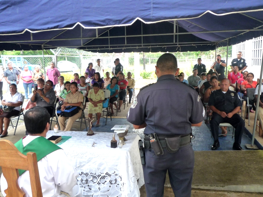 Proteger y Servir, dos palabras que enmarcan el trabajo diario del policía con la comunidad, pero que requiere de una alta vocación, pues en su labor diaria, deben atender toda clase de situaciones que implican no sólo riesgo, sino paciencia, tolerancia, imparcialidad entre otros dones o virtudes, de los que se deben hacer gala. Para ello nada mejor, que la orientación divina, razón esta por la que cotidianamente, en cada Subestación o Puesto de Policía de la Zona, se realizan misas, en las que además, participan miembros de la comunidad, quienes en completa camaradería con sus agentes de policía, comparten esos momentos de reflexión, para lograr, con la ayuda de Dios, un mejor servicio en la comunidad y que los ciudadanos, logren dirimir sus diferencias con el diálogo y la consulta permanente. Como parte de estas actividades, este viernes se realizó en el Puesto de Policía de Caimito, corregimiento de Pajonal, una misa, en la que participaron miembros de la comunidad, estudiantes y unidades policiales, ocasión que aprovecharon para bendecir las instalaciones policiales. |