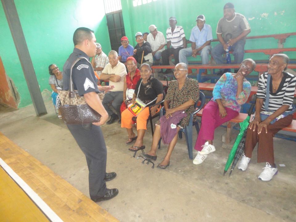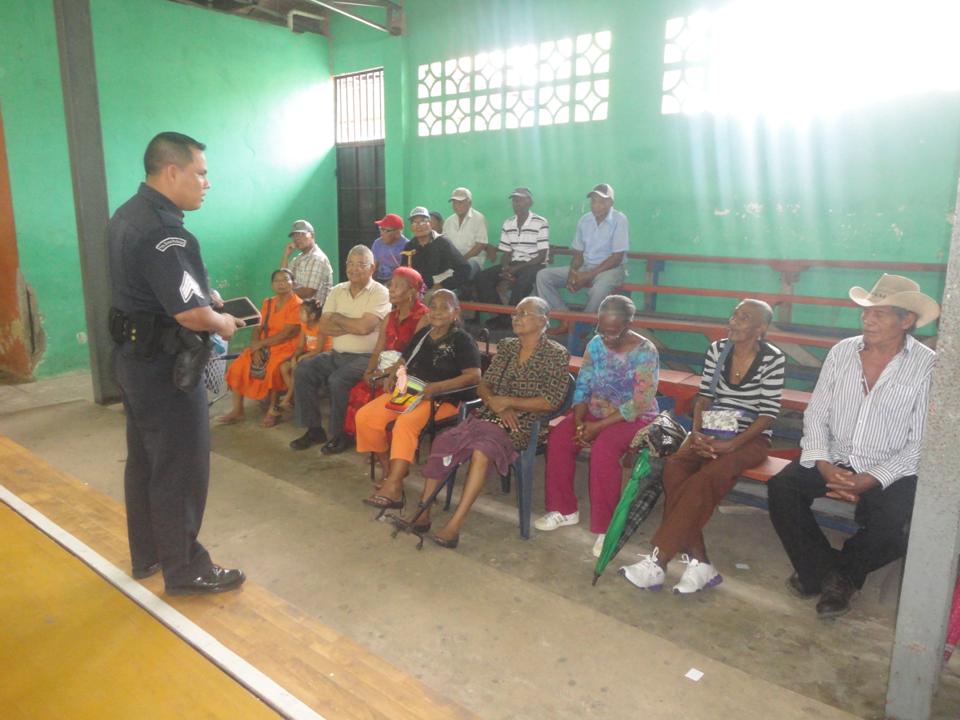 El Servicio de la Policía Cristiana de la 1º Zona Policial de Bocas del Toro, capacitó a un grupo de adultos mayores de esa provincia sobre motivación espiritual y seguridad personal. El orden del día inició con la intervención cristiana, luego funcionarios del Ministerio de Desarrollo Social (Mides) brindaron una capacitación sobre higiene y salud mental, para finalizar con un almuerzo y entrega de Biblias a todos los participantes. La Policía Nacional a través de la Oficina de Seguridad Ciudadana viene realizando actividades similares con adultos mayores, para evitar que los mismos sean víctima de antisociales. |