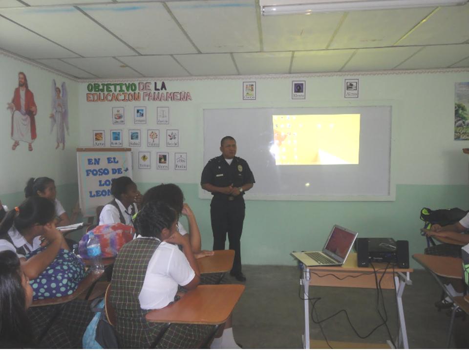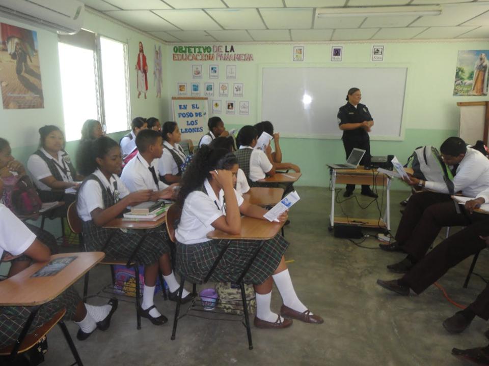 La Oficina de Reclutamiento y Selección de la Iº Zona Policial de Bocas del Toro ha iniciado una campaña en varios Colegios de la Provincia sobre Reclutamiento en la Carrera para Oficiales de la Policía Nacional y a los Diplomados en Administracion Policial dados en el Intituto Súperior Policial ISPOL. Las Unidades visitaron al Colegio Adventista Bilingüe de Changuinola motivando a los jóvenes para que sean parte de la Policía, donde hubo una asistencia de 40 estudiantes que cursan el VI año. La Lcda Nedelka Reid Directora del Plantel nos recibió y agradeció la presencia de la Policía Nacional por llevar esta actividad que va en veneficio de la población estudiantil. |