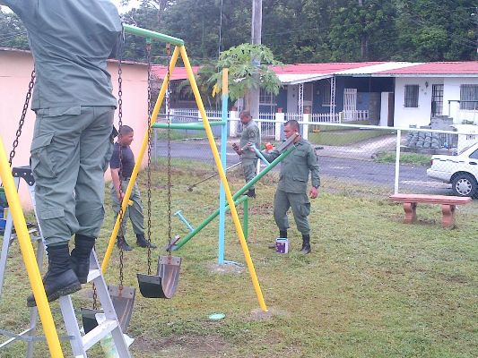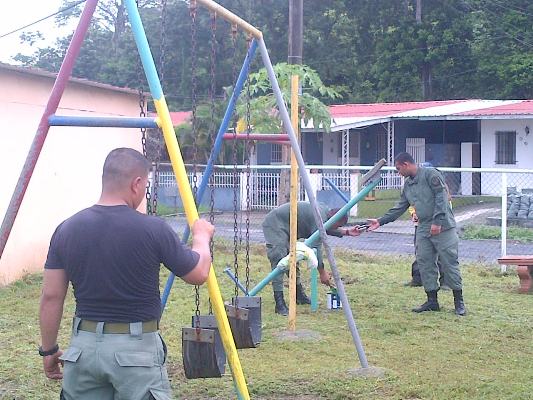 EN SAN MIGUELITO UNIFORMADOS LIMPIAN Y RESTAURAN PARQUE INFANTIL