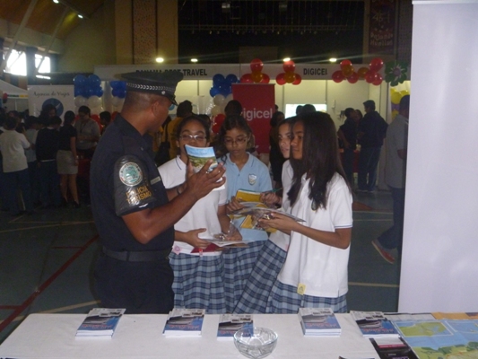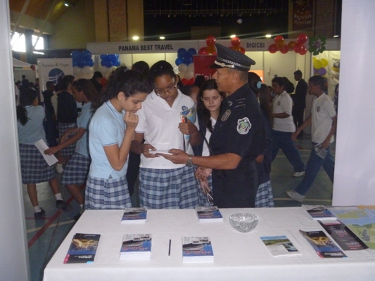 El Servicio de Policía de Turismo, participó en la primera exposición de Turismo y Letras, organizada por el Instituto Episcopal San Cristóbal, realizada los días 6 y 7 de agosto del presente año lectivo. Correspondió al Subteniente José Rodríguez y el Sargento 1ro. Alejandro Jiménez, realizar la exposición de material turístico, el cual consiste en mapas para orientar a los turistas, tarjetas con direcciones y teléfonos de hoteles y sitios de hospedaje, además de revistas con material importante para la orientación de los visitantes extranjeros. Los funcionarios policiales también brindaron consejos prácticos para los visitantes y explicaciones de las funciones que realiza el Servicio de Policía de Turismo, en sus diversas áreas de responsabilidad, las cuales fueron del agrado de los concurrentes y especialmente de los estudiantes mostraron mucho interés dada la temática del evento. |