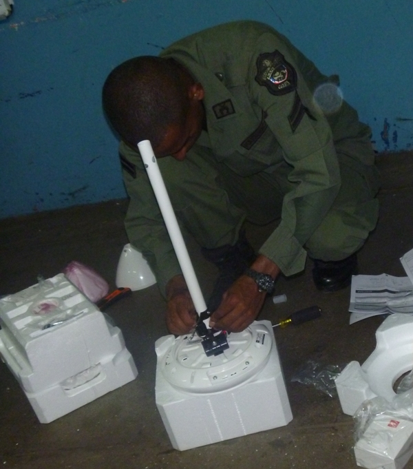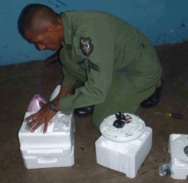 Personal de Infraestructura de la Treceava Zona Policial de Arraiján, desde muy tempranas horas de éste viernes 8 de agosto se apersonaron al Centro Educativo de Nuevo Arraiján donde iniciaron los trabajos de soldadura y colocación de abanicos en varios salones del plantel. En primera instancia realizaron una evaluación de las verjas y portones, donde se pudieron auditar 25 salones y tres pasillos que mantienen el sistema de las mallas deterioradas asó como tres salones de primaria con sus abanicos dañados. Posteriormente, iniciaron los trabajos de reparación de las mallas y a la colocación de abanicos en los salones de primer grado. Este centro educativo cuenta con una matrícula de más de mil quinientos estudiantes distribuidos en jornada matutina y vespertina, respectivamente. La oportunidad fue propicia para que las unidades de la Policía Cristiana dialogaran con personal docente, mientras la Policía de Niñez y Adolescencia compartió con los pequeños en su hora de Educación Física. |