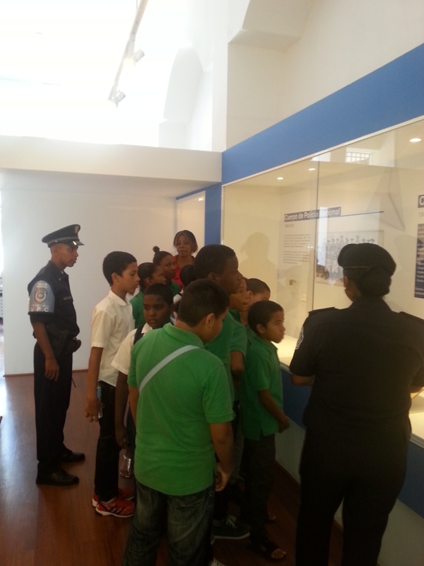 Unos 30 niños de la escuela Manuel Amador Guerrero de Barraza, realizaron recientemente un recorrido por el Salón de Historia de la Policía Nacional. Una de las secciones que más les agradó fue la galería de los directores y los distintos uniformes policiales. El personal que los atendió, mientras caminaban por las diversas áreas del museo, les habló de la formación policial y lo fundamental de reforzar la convivencia de la unidad policial con la comunidad. Esta relación despertó la curiosidad de uno de los niños, quien preguntó: ¿y esto para qué? Su duda fue aclarada cuando el teniente Víctor Sánchez, les explicó que todo esto se hace para fortalecer los vínculos de amistad para que todos juntos podamos cumplir la misión de tener barrios seguros. |