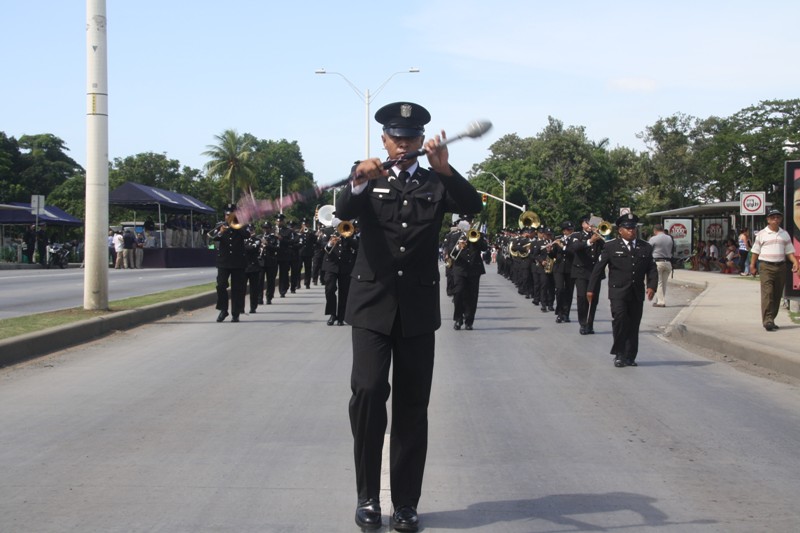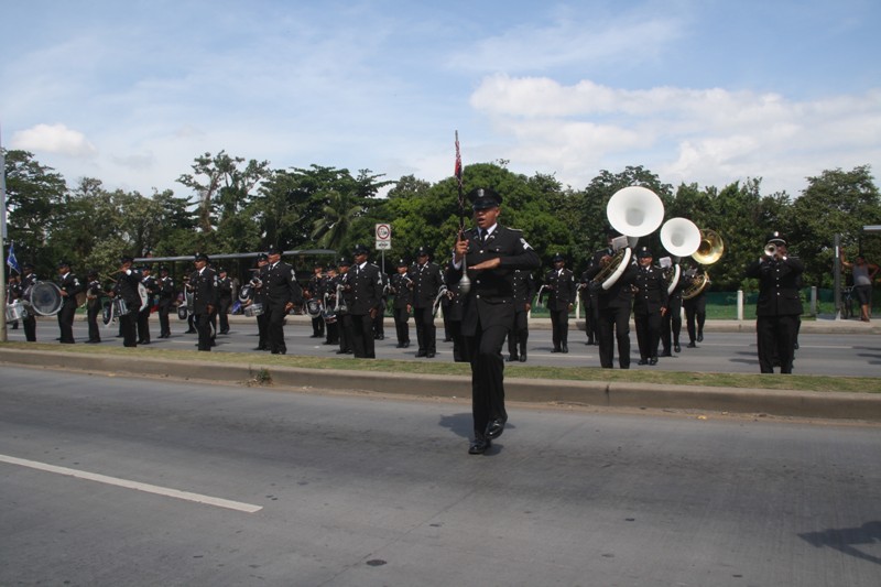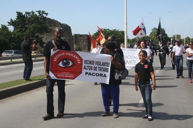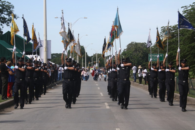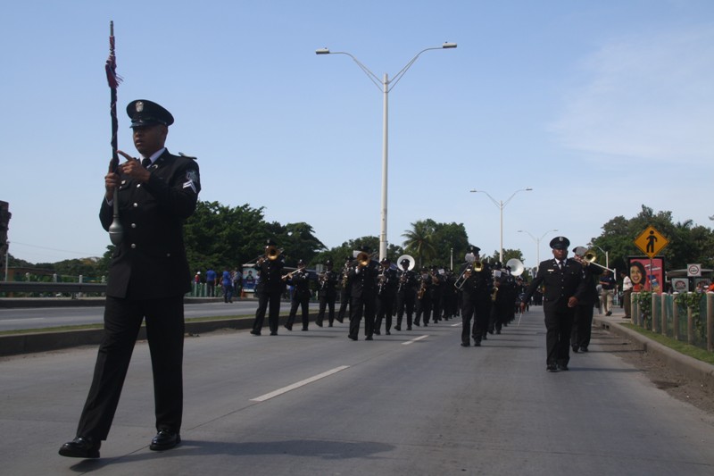 La Banda de Música de la Policía Nacional participó del desfile en celebración de los 495 años de Fundación de la Ciudad de Panamá La Vieja, organizado por la Junta Comunal de Parque Lefevre. En el desfile, la Banda de Música de la Policía y miembros de varios grupos de Vecinos Vigilantes acompañaron a las bandas de música de diferentes escuelas particulares y públicas, instituciones, agrupaciones cívicas, asociaciones y bandas independientes, en un recorrido que inició en la Estatua Morelos y entrara por la vías principales de Panamá Viejo hasta Puente del Rey. Varios miembros del Directorio Nacional de la Policía y jefes de zona se hicieron presentes en una tarima, donde compartieron con los residentes de esta comunidad. Igualmente, las unidades policiales mantienen la vigilancia en todas las actividades de celebración que iniciaron desde temprano, entre las que se incluyen la procesión de Nuestra Señora de la Asunción y la Sesión Solemne Conmemorativa a la Fundación de la Ciudad; en el Convento de Las Monjas de la Concepción. |