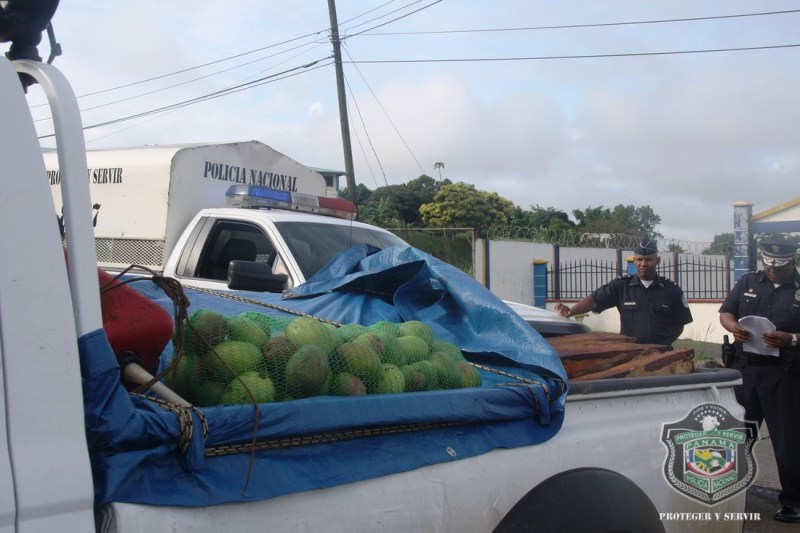 En menos de una semana la Policía Nacional asestó un duro golpe al tráfico ilegal de madera de árbol Cocobolo, mediante diligencias realizadas en Arraiján, distrito de Chepo y en el Parque Nacional Camino de Cruces, en la ciudad capital. En estas tres diligencias policiales, se logró incautar un total de 376 tucas de esta madera y la aprehensión de ocho personas que estaban dedicados a este delito ecológico. Este miércoles 20 de agosto, fueron decomisadas 37 tucas de madera, en el sector de Valle de El Sol, en el distrito de Arraiján, tras alerta de la ciudadanía de que dos vehículos tipo pick up, transportaban verduras, circulaban de manera sospechosa por el sector. Las unidades policiales acudieron al lugar ubicando en ambos vehículos la madera cortada, escondida debajo de las verduras. En este caso fueron aprehendidas 4 personas, quienes iban a bordo de los vehículos. Mientras que unidades de servicio en la zona policial del distrito de Chepo, en un patrullaje en los predios del puerto de Coquira, lograron interceptar una embarcación (lancha), que transportaba 194 tucas de cocobolo. En tanto, a pocos kilómetros del río, los uniformados lograron ubicar 104 tucas del árbol conocido como cativo, que estaban a orillas del manglar. Igualmente, unidades del Servicio de Policía Ecológica lograron la aprehensión de 4 sujetos y decomisaron 41 tucas de madera de cocobolo en elSendero Ruinas de Cárdenas o la Palangana, en el Parque Camino de Cruces. En esta área, las unidades sorprendieron a los sujetos cuando cargaban las tucas de madera. La Policía Nacional continuará colaborando con la Autoridad Nacional del Ambiente (ANAM), en sus recorridos y vigilancia para capturar, a quienes ingresan a nuestros bosques para cometer crímenes ecológicos, como la tala de Cocobolo, especie que es protegida debido a que está en lista de vía de extinción. |