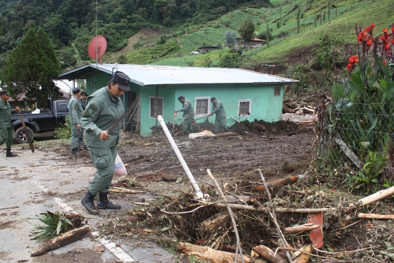 La Policía Nacional apoya con la seguridad y labores de limpieza en la comunidad de las Nubes, en el corregimiento de Cerro Punta, en la provincia de Chiriquí, donde el pasado domingo 17 de agosto se registró el desbordamiento del río Chiriquí Viejo. Las unidades policiales realizan operativos de seguridad en el área afectada, labores de apoyo en los centros de acopios, limpiezas y remoción de escombros en casas que resultaron parcialmente afectadas. En el lugar también permanece la ambulancia de esta zona policial, con su equipo de paramédicos y doctores brindando asistencia médica a damnificados del desastre natural. El Comisionado Julio Cesar Lasso, jefe de la zona policial de Chiriquí, mantiene su presencia en el lugar por el tiempo que sea necesario hasta que el área, vuelva a su normalidad. |