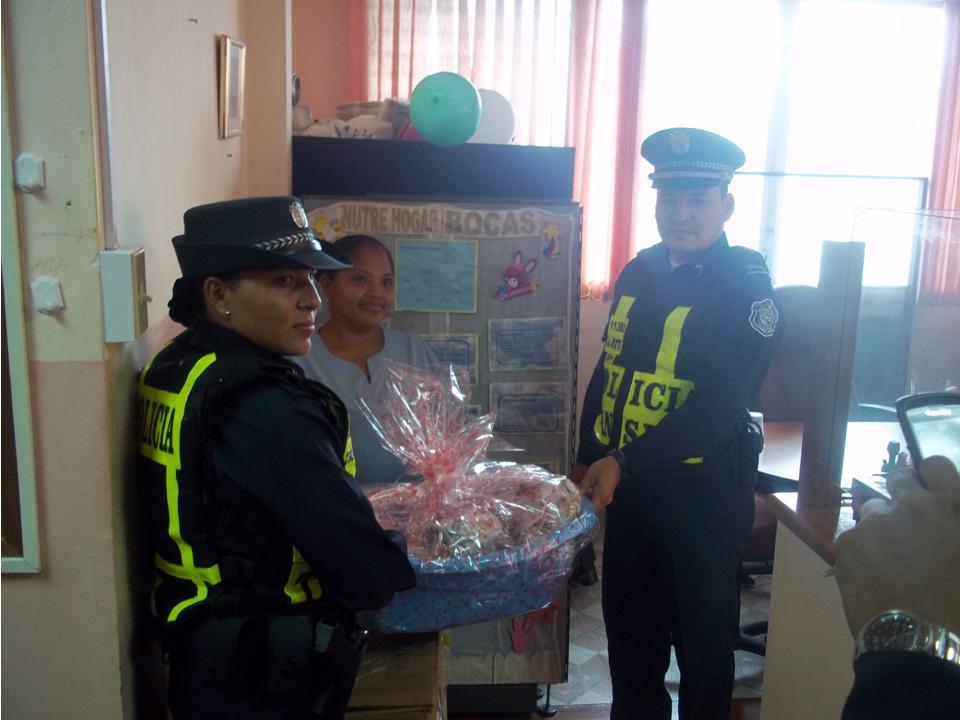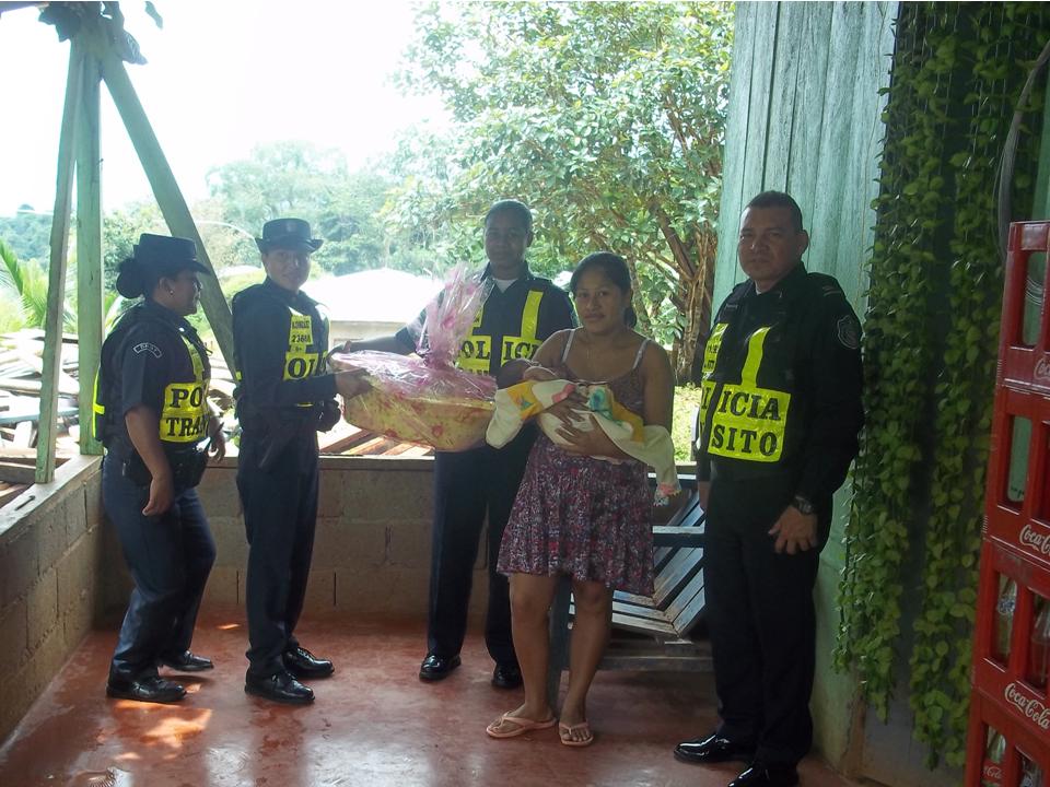 Agentes de la Subdirección de Operaciones del Tránsito de la Policía Nacional en Bocas del Toro, entregaron varias canastillas a los primeros niños nacidos en el Hospital Raúl Dávila en Changuinola, en conmemoración de su aniversario 45. De igual manera, se le hizo entrega de una canastilla a la agente Rebeca Quiroz, quien labora en el grupo administrativo de la 1° Zona Policial de Bocas del Toro, quien dio a luz a una niña en esta fecha. En marco de esta celebración, se realizó una jornada de volanteo por las diferentes avenidas de la ciudad de Changuinola, con mensajes alusivos a la seguridad vial y la prevención de accidentes de tránsito. Este festejo finalizó con un agasajo a las unidades que diariamente salen a las calles a velar por la seguridad de los transeúntes y de los conductores. |