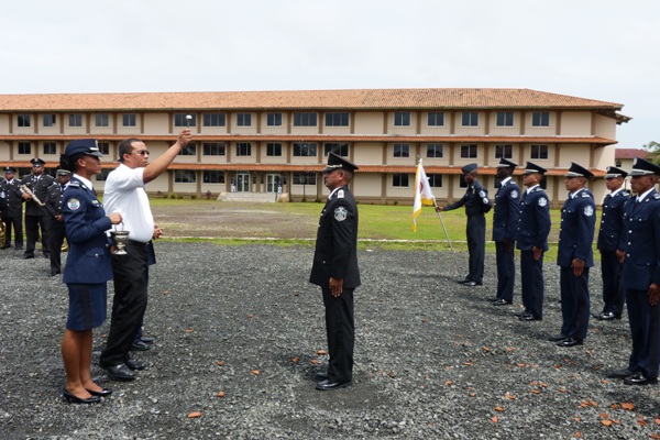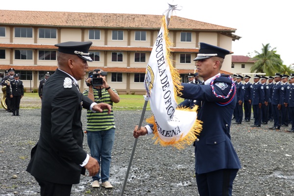 El Centro de Enseñanza Superior "Dr. Justo Arosemena" fue el escenario de la ceremonia de cambio de mando, además del bautizo del batallón y las diferentes compañías de cadetes de esta escuela de oficiales, ubicada en la provincia de Colón. Con la solicitud de permiso por parte del capitán Hermógenes Arguelles, encargado de la División de Cuerpo de Cadetes, inició la ceremonia. En el acto, el secretario general de la Policía Nacional, David Ramos en representación del director general, Omar Pinzón hizo entrega del banderín de mando de la escuela de oficiales al subcomisionado Simón Henríquez. El Comisionado reconoció el gran desempeño realizado por el mayor Manuel Zorrilla durante su administración en la escuela de oficiales, por su dedicación y sentido del deber, plantando las bases de las nuevas generaciones. Ramos también hizo un llamado al subcomisionado Simón Henríquez para que siga manteniendo el honor en alto, la disciplina y fortalezas que hacen de los cadetes un permanente orgullo para la Policía Nacional y para Panamá entera. “El buen policía, el oficial más apto para comandar el recurso humano de la institución, se caracteriza por su formación, por la mística profesional y por su respetuoso apego al uniforme y a las responsabilidades que esto conlleva” destacó el Comisionado. En tanto, el subcomisionado Simón Henríquez, dijo que para él es un gran reto estar a cargo de la formación de los cadetes, futuros oficiales de la institución, en hacer respetar y cumplir las leyes como exige la sociedad panameña e igualmente, de entregar al país hombres y mujeres íntegros al servicio de la Patria. El sacerdote Ángel Pinilla de la parroquia Santa María de Jesús, bautizó en dicho acto al batallón y las compañías de las diferentes promociones del CES con el nombre de Manuel Quintero Villarreal. En tanto, la promoción de primer año fue bautizado con el nombre de coronel Tomás Armuelles Pérez, la promoción de segundo año con general Victoriano Lorenzo, la promoción de tercer año general José Domingo Espinal y a la promoción de cuarto año general Tomás Herrera. Por su parte, el director de Docencia, el subcomisionado Jorge Escobar dijo que los principios que se imparten a los cadetes serán para ayudar en la formación de los futuros oficiales e instó a ser ejemplos dignos de imitar. |