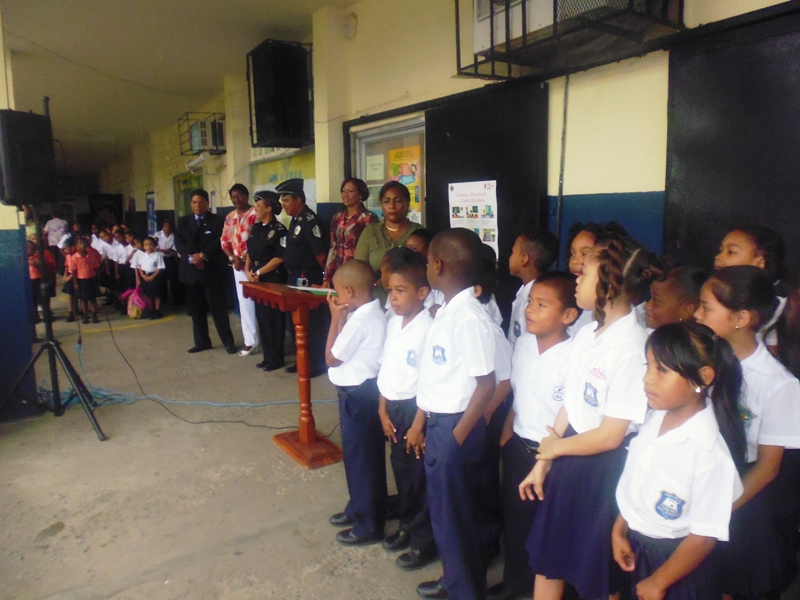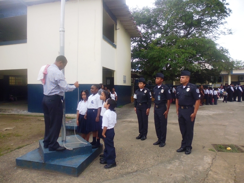 Como parte de la labor de acercamiento que realiza la Policía Nacional, en horas de la mañana de este lunes 8 de septiembre el jefe de la zona policial, Carlos Rumbo acompañado de una delegación participaron en el saludo a la bandera de la escuela Porfirio Meléndez, ubicada en la calle 12 avenida Santa Isabel. La directora del plantel, María Bernal agradeció al comisionado Rumbo su presencia en el lugar, donde precisamente realizó sus estudios primarios. Por su parte el Comisionado dijo estar orgulloso de regresar al plantel, además exhortó a los alumnos estudiar para que en el futuro sean profesionales y personas de bien. Cabe señalar, que las unidades de la zona policial de la provincia de Colón participan todos los lunes en el saludo a la bandera, en diferentes planteles educativos de la región.