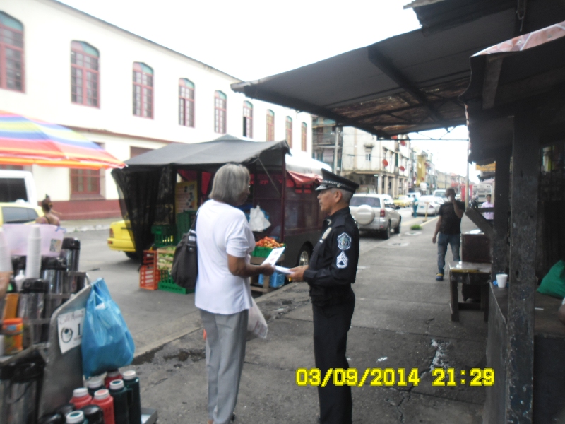Efectivos de la Policía Nacional en la provincia de Colón, entregan volantes con medidas de seguridad a la comunidad colonense. En horas de la mañana de este martes 16 de septiembre, los agentes policiales del Departamento de Seguridad Ciudadana entregaron volantes en diferentes puntos de la ciudad de Colón, con la finalidad de que la comunidad tome ciertas medidas de seguridad para evitar ser presa de los delincuentes. El comisionado Carlos Rumbo, jefe de la zona policial informó que esta es una de las medidas que está tomando la zona, porque en los últimos meses del años los facinerosos realizan mas fechorías y queremos que la comunidad este alerta para no ser víctima de estos. Las volantes tienen los números telefónicos donde las personas pueden denunciar cualquier acto delictivo.