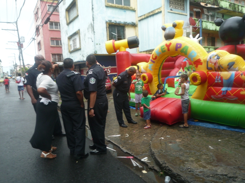 La Policía Nacional realizó un convivio para los niños que residen en la calle 12 avenida Meléndez y sus alrededores, en la provincia de Colón para ofrecerles espacios recreativos durante la semana de vacaciones escolares. El comisionado Carlos Rumbo, jefe de la zona policial, expresó que la actividad tiene como objetivo brindarle unas vacaciones totalmente diferentes, con actividades en las que puedan compartir con los unidades de policías. Rumbo enfatizó que siguiendo con el programa de "Barrios Seguros" se realizará esta actividad en diferentes puntos de la ciudad de Colón. Los niños disfrutaron de brinca brinca, pasearon en motos, jugaron fútbol, los pinta carita les pinto diseños en el rostro y disfrutaron de golosinas.