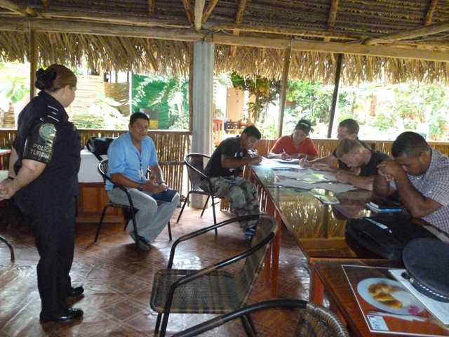 Unidades que laboran en la Policía Nacional de servicio en Turismo en la provincia de Veraguas, impartieron docencia sobre seguridad turística a propietarios y gerentes de los diferentes hoteles en el distrito de Santa Fe. Los uniformados trataron temas relacionados a la seguridad turística, prevención de actividades delictivas dentro de hoteles, atención al turista y la importancia de garantizar al visitante nacional y extranjero un ambiente seguro y confortable. La capacitación contó con la participación de funcionarios del parque nacional Santa Fe, el cual es administrado por la Autoridad Nacional de Ambiente, así como la presencia de autoridades del distrito de Santa fe y propietarios de hoteles de la localidad. El comisionado Gilberto cuevas, jefe de la zona policial de Veraguas, manifestó que en el programa de “Barrios Seguro” que se implementó en esta provincia está contemplado la colaboración al sector turístico.