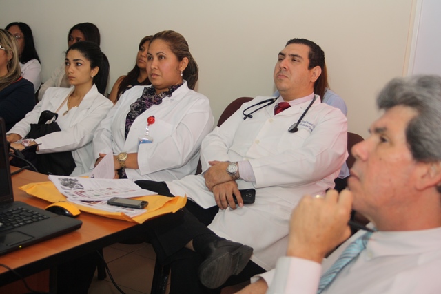 Personal de los Servicios Médicos de la Policía Nacional (clínica) recibieron este miércoles una capacitación en materia de Osteoporosis. Esta enfermedad se caracteriza por la pérdida de masa ósea, el deterioro de la microarquitectura del tejido óseo y aumenta el riesgo de sufrir factura. La capacitación fue auspiciada por la casa farmacéutica Bonese y contó con la asistencia de especialistas que ayudaron a conocer más a esta enfermedad que actualmente y según estudios médicos, el 55 % de las personas con más de 50 años en Estados Unidos, tienen un alto riesgo de padecerla. Diariamente los funcionarios de la clínica de la Policía Nacional atiende a 200 personas y 30 en odontología. |