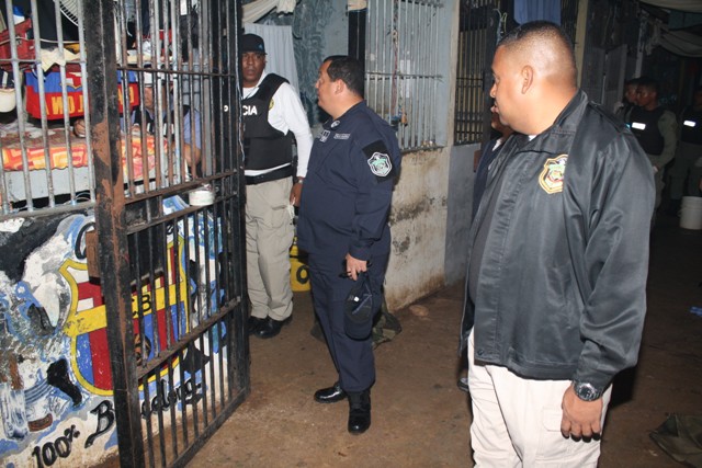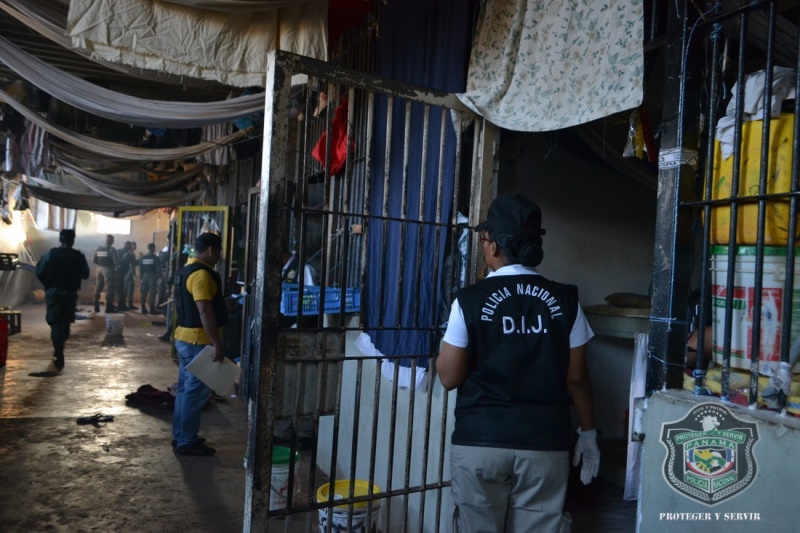 Más de 700 unidades del Servicio Nacional Aeronaval (SENAN), Servicio de Protección Institucional (SPI), Servicio Nacional de Fronteras (SENAFRONT), funcionarios del Ministerio Público y de la Policía Nacional, madrugaron a punta de bombas lacrimógenas a los internos del Pabellón 14 de La Joyita. Para Omar Pinzón, director General de la Policía Nacional, esta acción representa la implementación de la “Mano Firme”. “Esto no solo se hará aquí, si no se implementará en todo el país y más sobre aquellas personas que no quieran respetar la ley. “Hemos encontrado muchas cosas, si se comprueba que hay complicidad, no nos temblará la mano para que los responsables expliquen ante los funcionarios del Ministerio Público”, aseguró Pinzón durante una entrevista. La acción policial empezó a eso de las 4:00 a.m. y solo fue cuestión de tiempo para que los efectivos policiales comenzaran a encontrar todo lo que escondían los presos. Luego de dos minutos de requisa, los uniformados se topan en el pasillo del pabellón con una “granja” donde había al menos 20 gallos de pelea, varios pollitos y hasta una gallina empollando huevos. En las siguientes celdas, aparecen debajo de los colchones, esquina y dentro del baño, droga, chip de teléfonos, 80 celulares, platina, cuchillos, 20 paquetes de cigarrillos, navajas, dos perros y hasta un revólver calibre 38 con cinco municiones sin detonar. El jefe policial fue más allá y adelantó que funcionarios del Departamento de Responsabilidad Profesional ya están investigando las irregularidades. “Esta es una operación conjunta, para evitar que la violencia no se genere desde este punto. Nuestra misión es neutralizar toda acción que salga de aquí”, indicó Pinzón mientras veía detenidamente el conteo de las platinas y cuchillos. Algunas de las celdas tenían equipo de sonido y otras hasta sala de espera. Habían televisores pantallas planas, abanicos y varias estufas. |