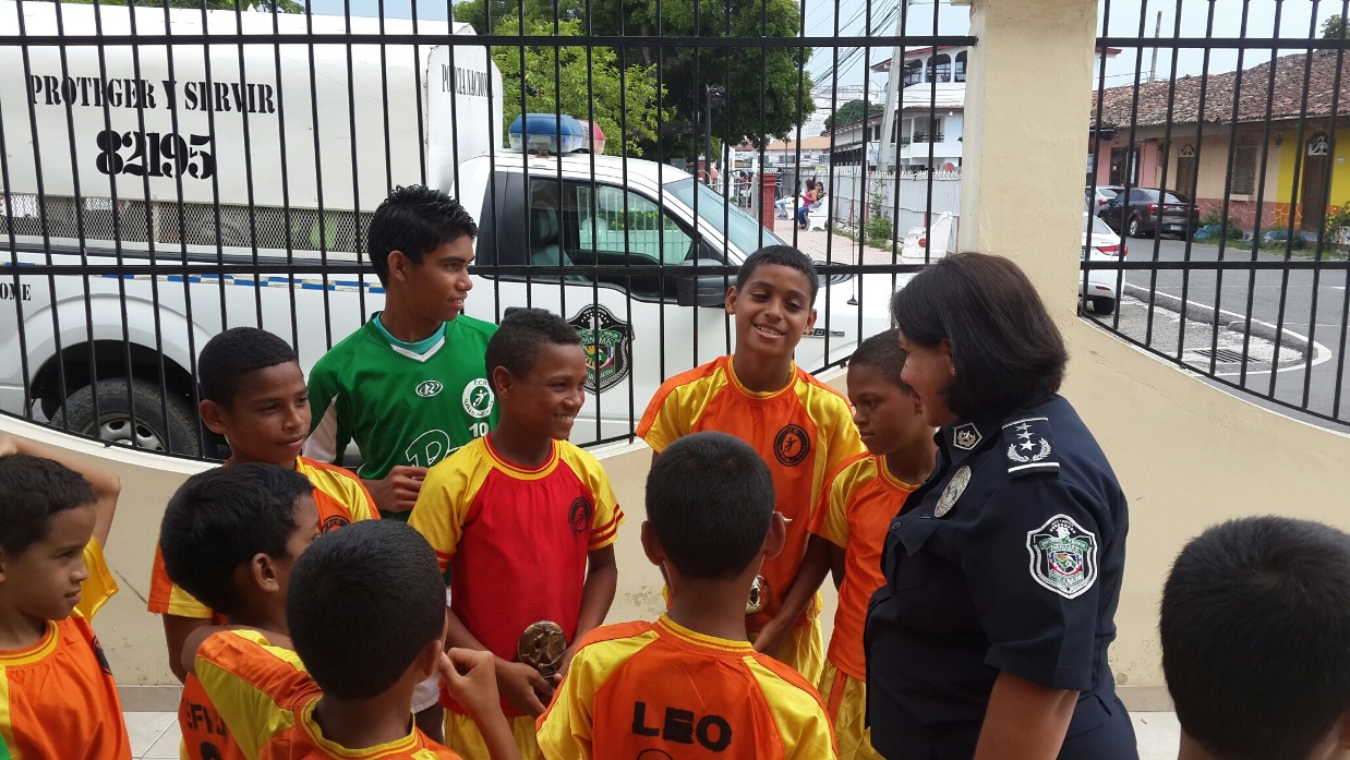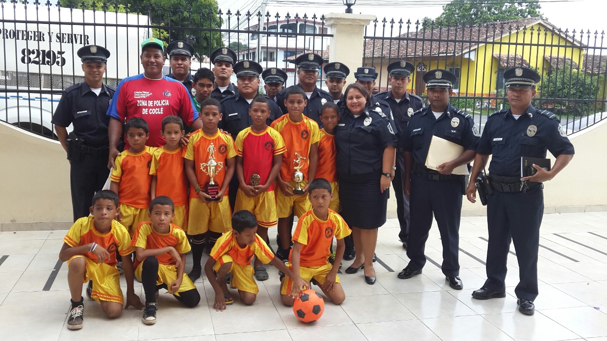 La zona de policial de la provincia de Coclé clausuró éste viernes 19, la liga de fútbol “Barrios Seguros”, en la que participaron 12 equipos de los distritos de Penonomé, Antón y Natá, actividad organizada para que niños aprovechen las vacaciones escolares de medio año. En este evento resultó como campeón, el equipo de San Martín, que representaba la comunidad de Santa María, corregimiento de Cañaveral; en Segundo lugar quedó el equipo de Natá Futbol Club, mientras que el tercer lugar fue para el equipo de Génesis Fútbol Club de Llano Marín y en cuarto lugar quedó el equipo Élite A, del Barrio de Chigoré, corregimiento de Penonomé. “Es para la Policía Nacional muy importante, mantener nuestros barrios seguros y esto se logra, no sólo con patrullajes, sino dando a los niños y jóvenes, actividades que les permitan crecer y desarrollarse en ambientes saludables” manifestó la Comisionada Ibeth González, Jefa de la zona policial. |