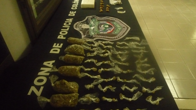 Un paquete con cocaína, 7 bolsas con marihuana, 90 envoltorios con la misma hierba, 8 bolsas de la droga conocida como crispy y 20 fragmentos de piedra o crack, fue el resultado de operativos y allanamientos realizado por la Policía Nacional en provincia de Colón. El comisionado Carlos Rumbo, informó que el paquete con cocaína se incautó en el área de Palenque donde fueron aprehendidas tres personas. Mientras que la otra droga se incautó en diferentes puntos de la ciudad, en poder de personas que se dedican a la venta criolla. Rumbo señaló que los operativos continuarán en diferentes puntos de la provincia, por lo que le solicita a la comunidad que denuncien el delito a los teléfonos 475-7049, 475-7031, 475-7051, donde sus denuncias serán tratadas de manera confidencial.