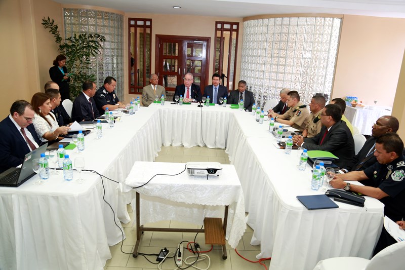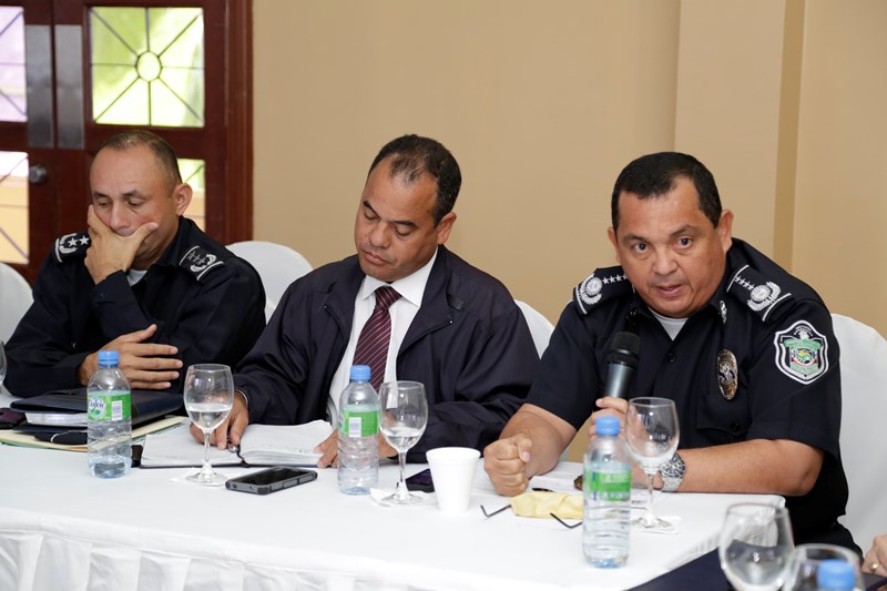 El director General de la Policía Nacional, Omar Pinzón se reunió este miércoles 24 de septiembre con magistrados de la Corte Suprema de Justicia (CSJ), para tratar puntos relativos a la incidencia de la criminalidad en Panamá y la afectación que le puede ocasionar al país. El comisionado Pinzón explicó a los magistrados de la CSJ, entre ellos al presidente de esta entidad judicial, José Ayú Prado los avances en materia de seguridad y la importancia de la colaboración interinstitucional. Destacó algunas estrategias a futuro para enfrentar las agrupaciones delictivas y lograr un acercamiento más efectivo con la comunidad, sobre todo con programas preventivos para así tener “Barrios Seguros”. En esta reunión también estaban el director del Servicio Nacional de Fronteras, Frank Abrego; el director del Servicio de Protección Institucional, Eric Estrada; el subdirector del Servicio Aeronaval, Luis Ruíz, el subdirector del Servicio Nacional de Migración, Miguel López Cedeño. A los magistrados de la máxima corporación de justicia, José E. Ayú Prado (presidente), Oydén Ortega, Víctor Benavides, Alejandro Moncada Luna, Harry Díaz y Secundino Mendieta se les aclaró algunas dudas e igualmente intercambiaron experiencias. En tanto, el magistrado Ayú Prado dijo que se trata de una primera reunión que se realiza y que efectuarán con frecuencia. |