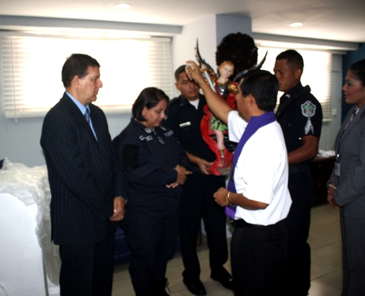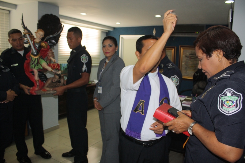 Recientemente la zona policial de Coclé, fue bendecida con la donación de una imagen del santo patrono San Miguel Arcángel que fue confeccionada por los colaboradores de esta institución. En la entrega estuvo presente el vicegobernador de la provincia de Coclé, el licenciado Rommel Quirós, la licenciada Yeny Ureña, quien manifestó, que ella es una fiel devota de San Miguel Arcángel. La comisionada Ibeth González, jefa de la zona policial, agradeció de parte de la segunda zona de policial a los colaboradores por la muestra de cariño y la bendición recibida, Calificó de significativo y maravillosa la presencia de San Miguel Arcángel, patrono de la Policía Nacional. Aprovechó para extender una cordial invitación a todos los presentes, para que nos acompañen a las festividades este lunes 29 de septiembre, desde las 6:00 p.m. con la eucaristía y posteriormente la procesión.