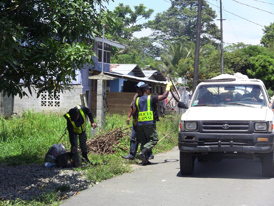 El fin de semana pasado, unidades del Servicio Preventivo de la zona policial de la provincia de Bocas del Toro realizaron una jornada de limpieza en la comunidad de Finca 04 en Changuinola. En esta ocasión, varios funcionarios del Municipio de Changuinola, vecinos del lugar y unidades de la Policía Nacional en varios vehículos lograron sacar chatarras y basura de las residencias. El comisionado Javier Castillo Jefe de Zona, dijo que estos operativos de limpiezas seguirán en todos los barrios de la Provincia de Bocas del Toro. |