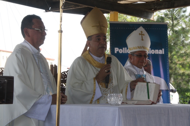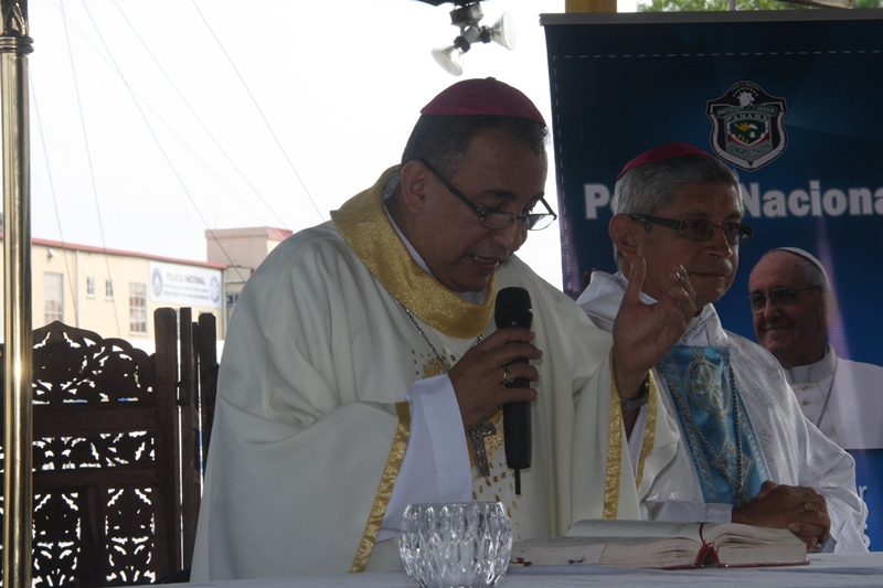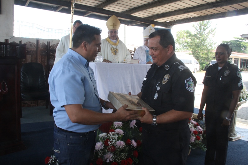 Con mucho regocijo se celebró una misa campal en la sede de la Policía Nacional en el corregimiento de Ancón, donde se rindió homenaje a San Miguel Arcángel, santo patrono de los estamentos de seguridad. Durante la eucaristía que fue presidida por monseñor José Domingo Ulloa, los uniformados acompañados por el Director General de la Policía Nacional, Omar Pinzón se unieron en oración para dar gracias al “Todo Poderoso” por las bendiciones recibidas, a la vez pidieron protección en su misión de “Proteger y Servir”. En sus palabras, monseñor Ulloa reflexionó sobre los valores que toda persona debe preservar como ser humano integro e invitó a los presentes a fortalecer la fe en Dios, como soporte ante la adversidad. El Monseñor estuvo acompañado por el Pedro Hernández, obispo responsable de la capellanía de los estamentos de seguridad y el padre, Edgar Flores capellán de la Policía Nacional. En tanto, el Director General de la entidad policial agradeció al Monseñor Ulloa por su presencia en esta ceremonia religiosa. También, fue bendecida la Biblia de la Policía Nacional, la cual se mantendrá en la capilla de la sede, esta fue recibida por el Director General de manos de monseñor Ulloa. Más temprano, el personal juramentado y no juramentado de la institución de seguridad, acompañaron la imagen del Santo en una procesión que recorrió las instalaciones de la sede policial.