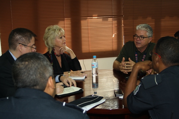 La mañana del martes 30 de septiembre de 2014, la Policía Nacional recibió la visita de las autoridades de la Universidad de ST. Petersburg, Florida, Estados Unidos. El motivo de la visita fue examinar el trabajo diario de las unidades que integran la Policía Comunitaria panameña, analizarla y brindar sugerencias sobre elementos considerados esenciales y claves para lograr el futuro exitoso en la Policía Nacional. Este programa está patrocinado por la Sección de Antinarcóticos y Aplicación de la Ley (INL), que les permite asumir el rol de catalizadores en el desarrollo de la Policía Comunitaria en este caso, en nuestro país. Participaron de este encuentro por la Universidad de ST. Petersburg, Florida, el Dr. Ernesto Fernández, la Dra. Carol Rasor, y Ramón Negrón, por la institución los recibió el Subdirector General de la Policía Nacional, Javier Castillo; el comisionado Willington Zambrano, comisionado Alvin Reyes y el subcomisionado Rafael Álvarez. Las direcciones de Docencia y Telemática también serán analizadas por los expertos en materia de intercambio de ideas y para lograr un mejoramiento en todos los servicios.