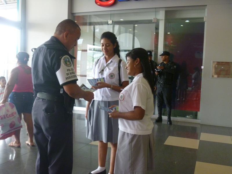 Con miras a garantizar la seguridad y la ciudadanía pueda tener más barrios seguros, unidades de la Zona Policial de Arraiján, continúan desarrollando diversas acciones preventivas en todo este distrito. En centros comerciales, las unidades distribuyeron gran cantidad de volantes con mensajes alusivos a seguridad y prevención. Mientras que en los centros educativos dialogaron con los estudiantes sobre la presión de grupos, decir "no a las drogas" y a las pandillas. La Policía Nacional continúa realizando diariamente operativos y rondas en los lugares de mayor incidencia delictiva. |