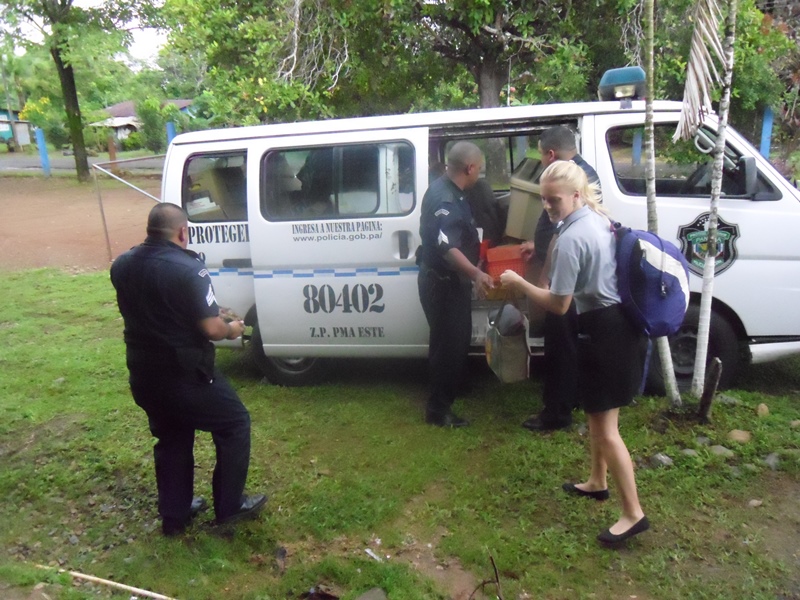 Unidades de la zona policial de Panamá Este, brindaron apoyo a miembros de la Organización Cuerpo y Paz de la Embajada de Estados Unidos, en colaborar en la movilización de una serie de artículos y libros para el equipamiento de una biblioteca en la escuela de la Comunidad de Unión de Azuero del Distrito de Chepo.