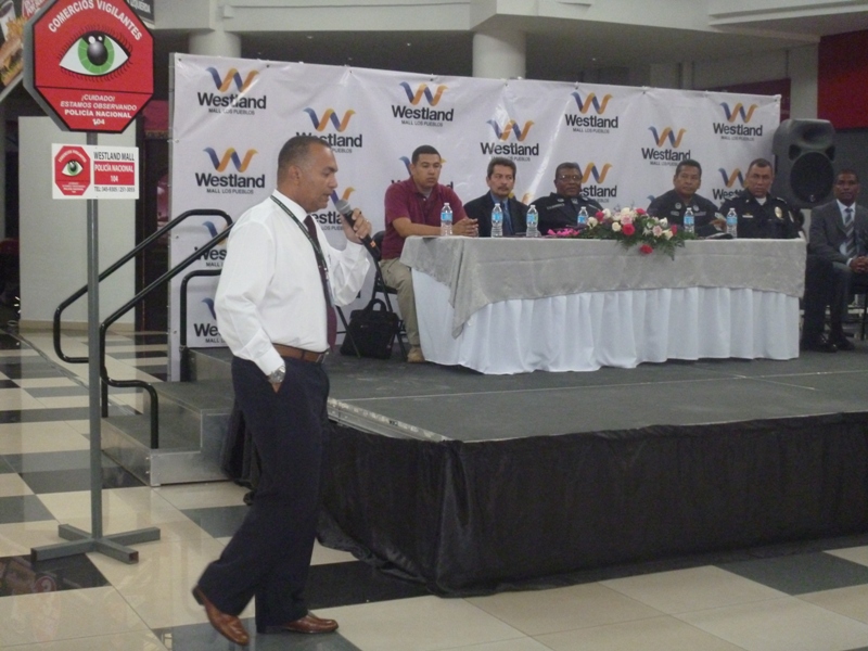 Representantes de 150 locales comerciales ubicados en el Centro Comercial Westland, participaron este miércoles 8 de octubre, en la primera reunión informativa de fin de año sobre las medidas de seguridad dentro y fuera de sus locales. La capacitación fue dictada por el sargento primero Geovanni Navarro, quien habló sobre las medidas de seguridad que deben tomar para evitar ser víctimas de hurtos y robos. El capitán Gilberto Moreno, Jefe de la Dirección de Investigación Judicial de Vacamonte, trató el tema de la clonación de tarjetas de créditos. Después de las charlas, las interrogantes fueron atendidas por el subcomisionado Luis Navarro, jefe de la Zona de Policía de Arraiján. |