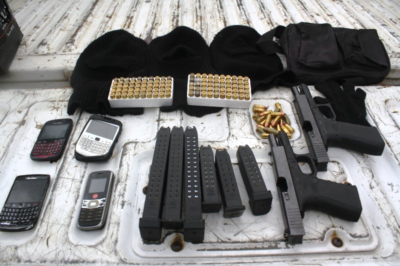 Unidades de servicio en la Dirección de Investigación Judicial (DIJ) y funcionarios del Ministerio Público tomaron 6 puntos del distrito de San Miguelito, logrando el decomiso de 2 armas de fuego, más de 100 municiones, 6 proveedores, pasamontañas y celulares. Todo se dio en horas de la mañana en el sector de Mano de Piedra, corregimiento de Arnulfo Arias. Este operativo se llevó a cabo en conjunto con la Dirección Nacional de Inteligencia Policial, sección de Antipandillas, Fiscalía Contra la Delincuencia Organizada, donde se aprehendieron 10 sujetos entre ellos un menor de 17 años, los cuales presuntamente guarden relación con diferentes pandillas. |